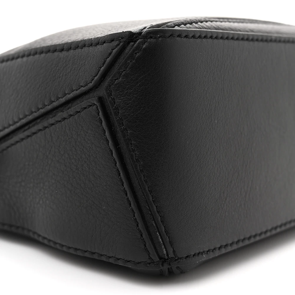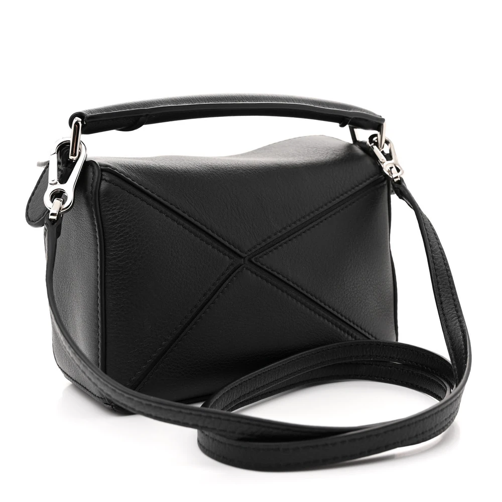 This Loewe Puzzle Bag Mini in Black delivers minimalist elegance with its compact design. Made from soft calfskin leather, it features the brand’s signature geometric style. Perfect for essentials, it’s lightweight and functional. The black color enhances its timeless appeal. Adjustable strap provides versatility for any look. An essential accessory for modern lifestyles.
