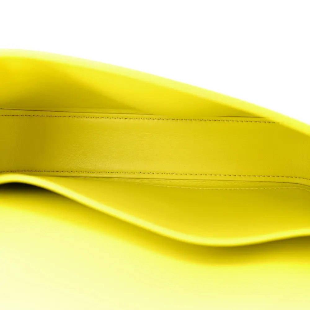 This Celine Small Cuir Triomphe Chain Shoulder Bag in Anis showcases shiny calfskin leather with gold hardware. Its sleek design offers timeless elegance. Spacious enough for essentials, it’s perfect for day or night use. The chain strap adds a refined touch. A sophisticated piece for modern styling.