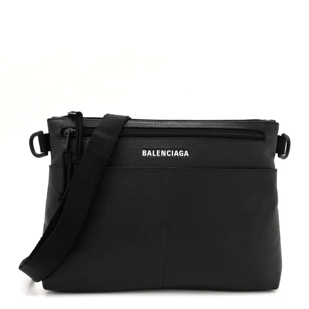 This Balenciaga Small Explorer Crossbody Flat Pouch in Black is crafted from durable grained calfskin leather with sleek black hardware for a modern, understated look. Compact and practical, it features a zip-top closure to secure your essentials. The adjustable strap ensures versatile carrying options, ideal for daily or travel use. Its minimalist design and subtle branding make it a refined accessory. Lightweight and stylish, this pouch complements casual and chic outfits effortlessly. A perfect companion for on-the-go lifestyles, blending utility with Balenciaga’s signature edge.