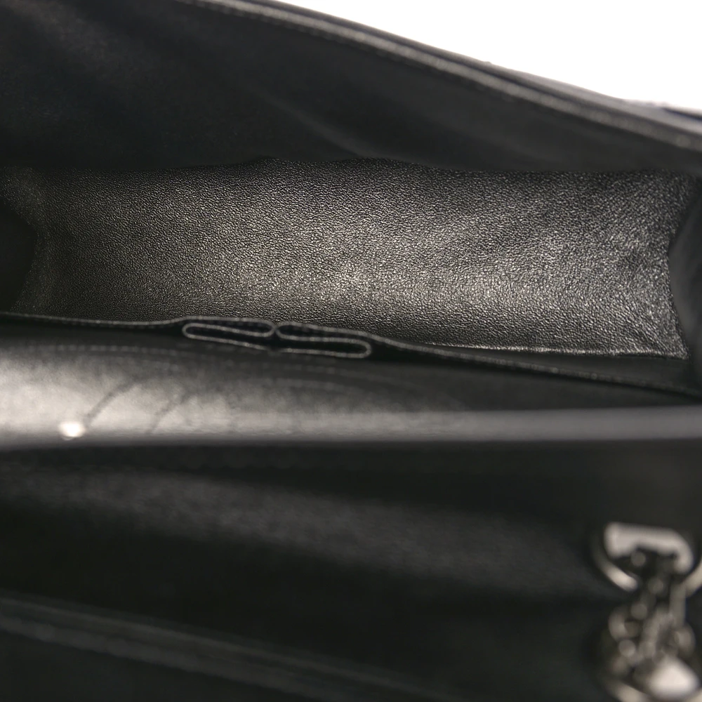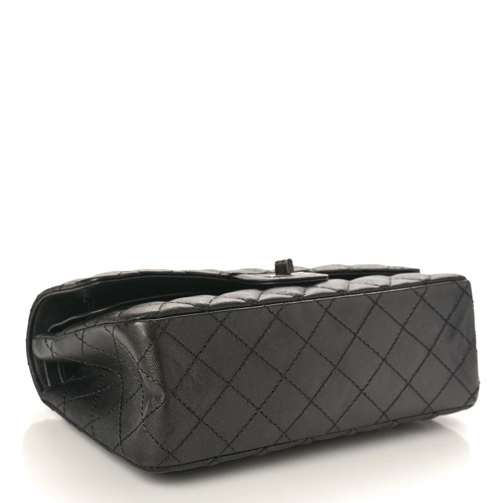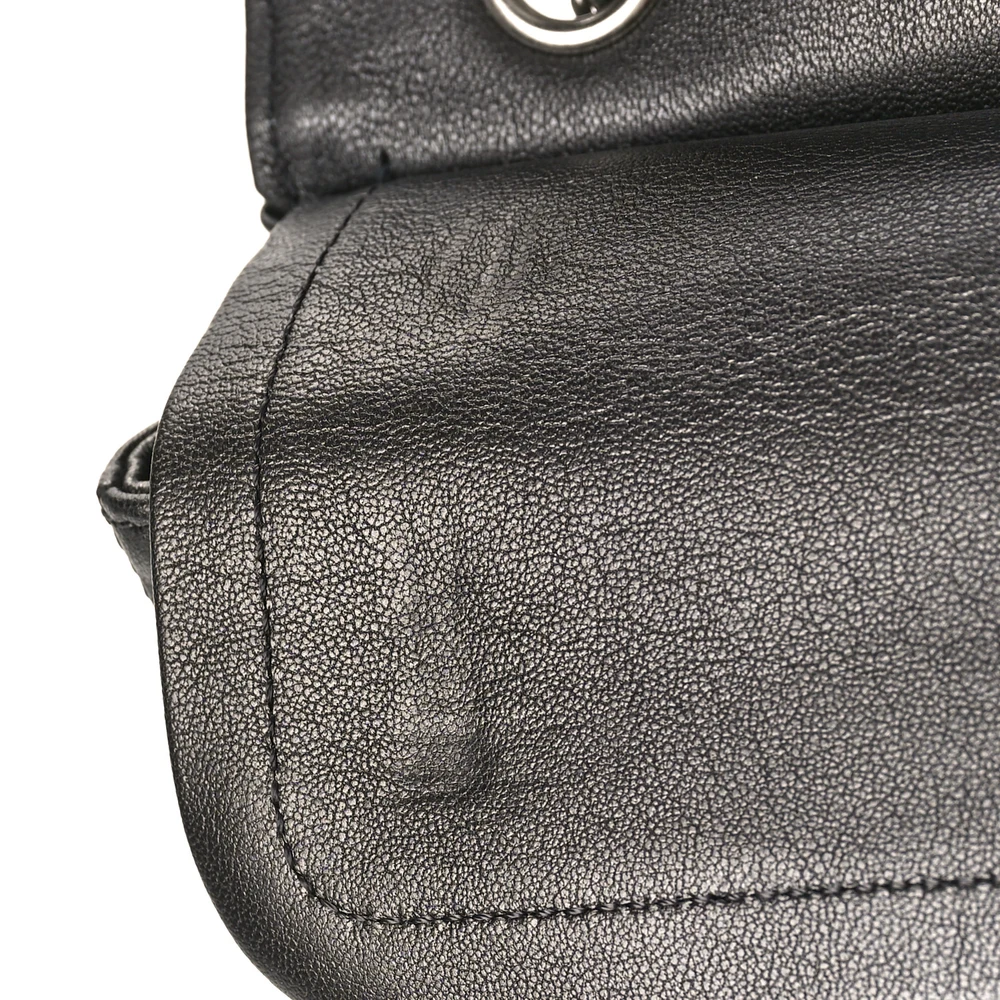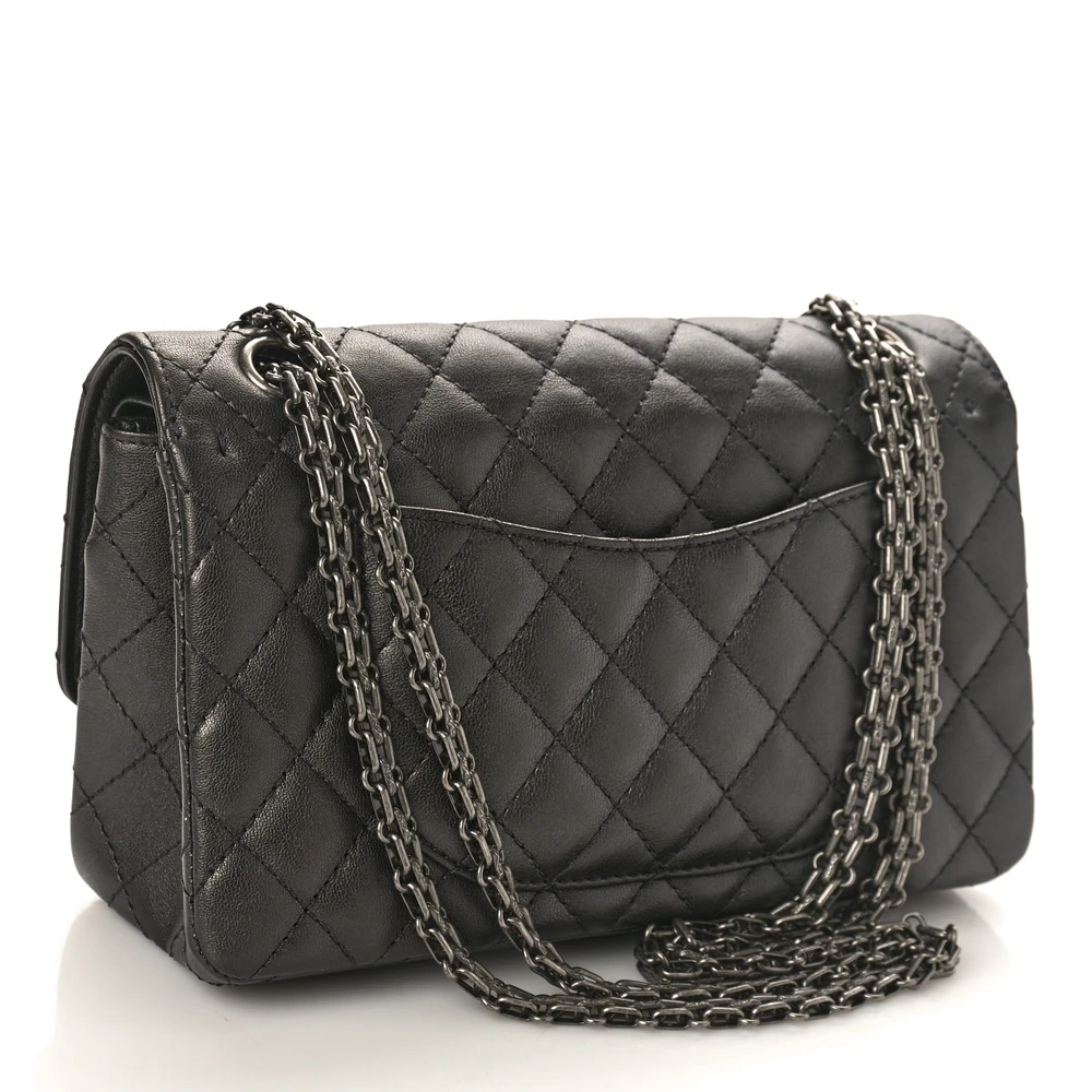 This Chanel 2.55 Reissue 225 Flap Medium in Metallic Black Quilted Sheepskin Leather with Ruthenium Hardware is a bold and edgy design. The metallic finish adds a modern twist to the classic quilted pattern. The soft sheepskin leather exudes luxury, while ruthenium hardware enhances its contemporary appeal. Spacious and versatile, it’s ideal for any occasion. The reissue design pays homage to Chanel’s heritage. A must-have for modern fashionistas.