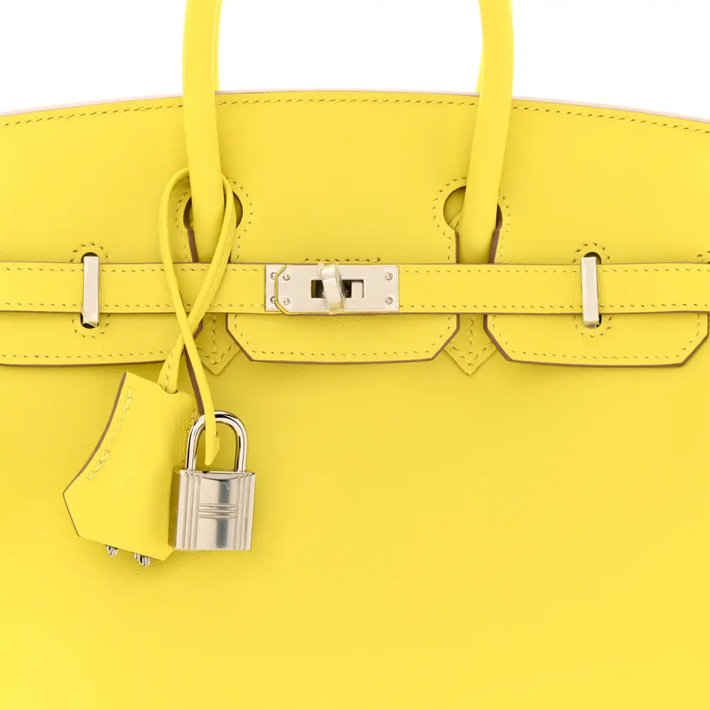 This Hermès Birkin 25 in Lime Swift Leather is a vibrant statement of luxury. The bright lime hue is paired with palladium hardware for a bold and modern aesthetic. Crafted from supple Swift leather, it’s both durable and refined. Compact yet functional, it’s ideal for carrying essentials in style. A playful twist on the iconic Birkin silhouette. A standout piece for any luxury wardrobe.