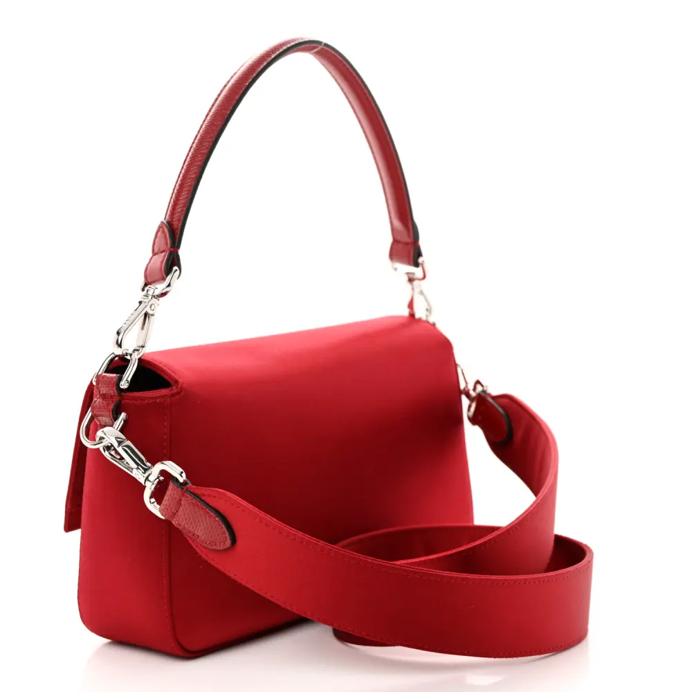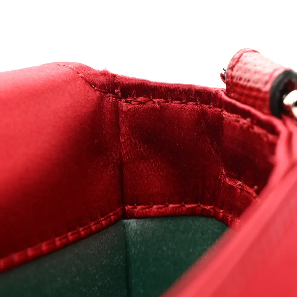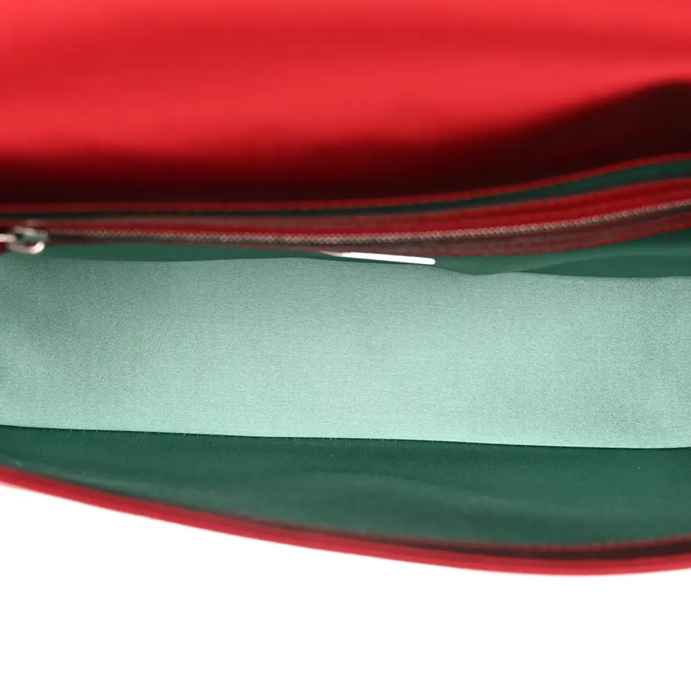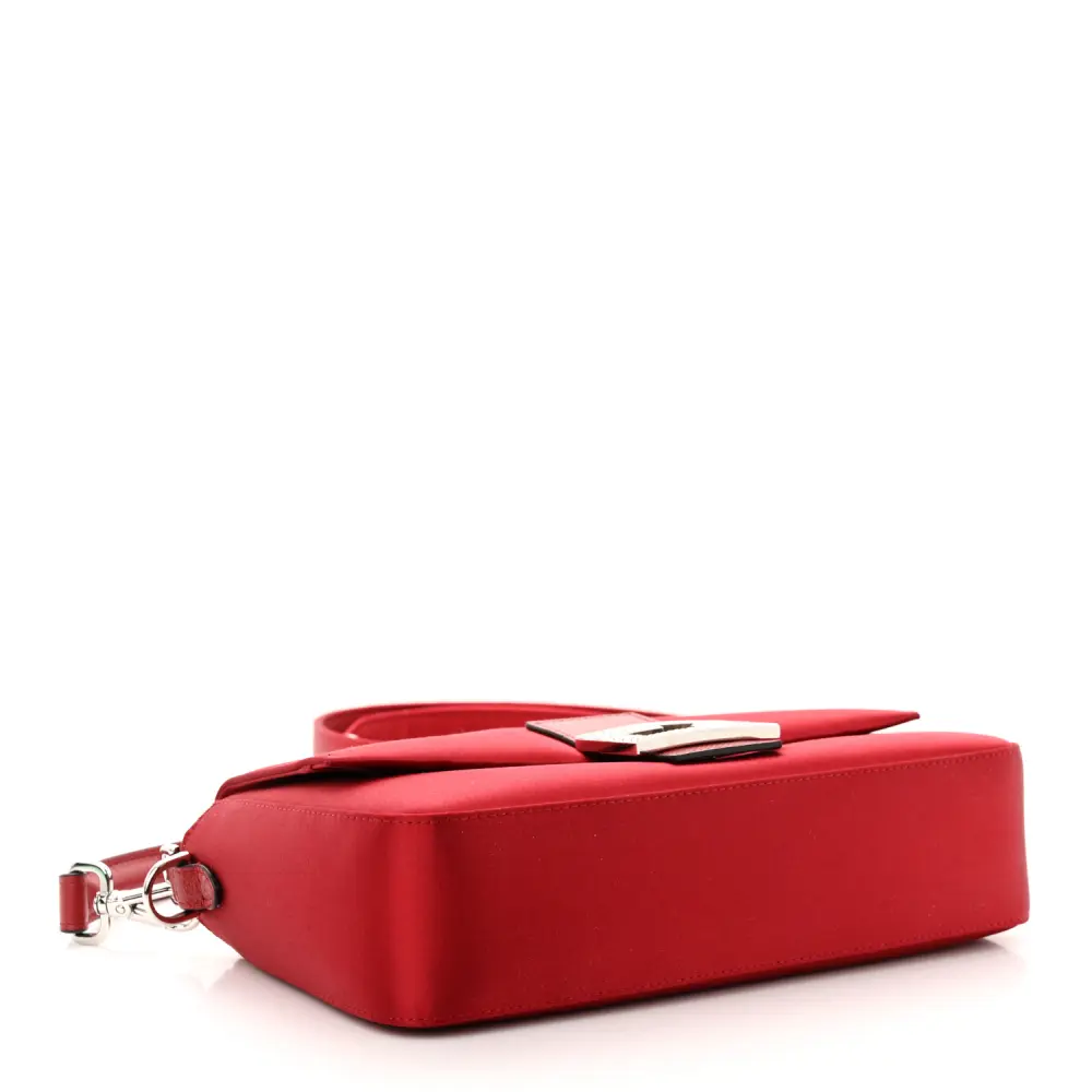 This Fendi Baguette in Rosso Scuro features Satin Karung Leather with Crystal embellishments. Silver hardware adds a polished finish to its elegant design. Compact yet functional for your essentials. Its luxurious texture exudes sophistication and style. Ideal for glamorous events or evening occasions. A timeless addition to your collection.