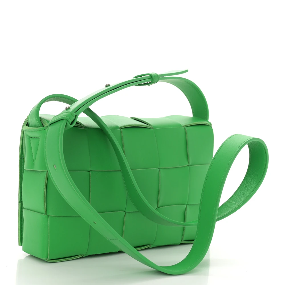 This Bottega Veneta Maxi Intrecciato Cassette Crossbody Bag in Grass showcases bold sophistication. Lambskin leather and the oversized woven texture make a striking statement. Spacious and functional, it’s perfect for daily use. The vibrant green tone enhances its modern appeal. A standout accessory for any wardrobe. Elevate your style with this iconic bag.