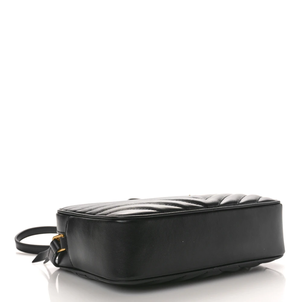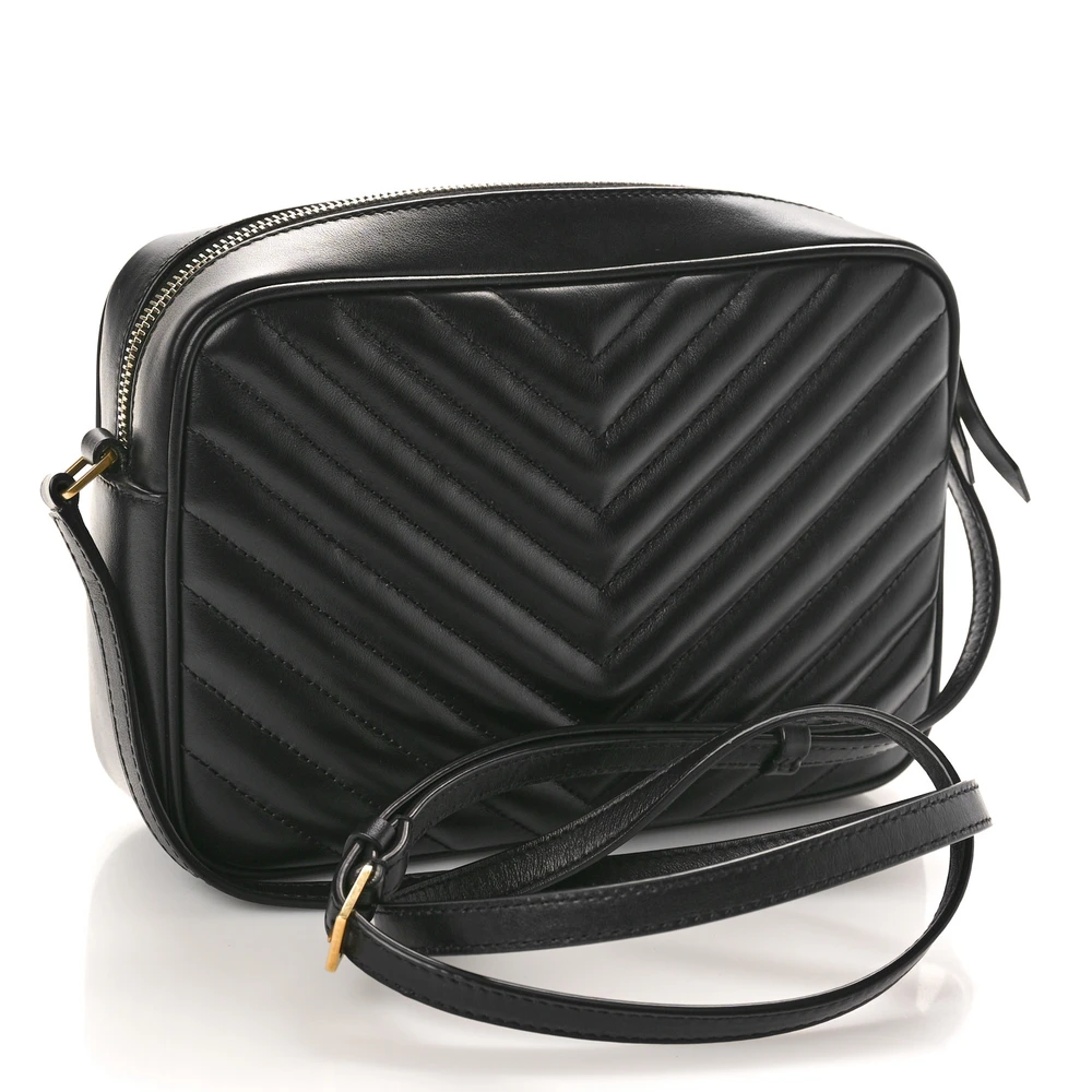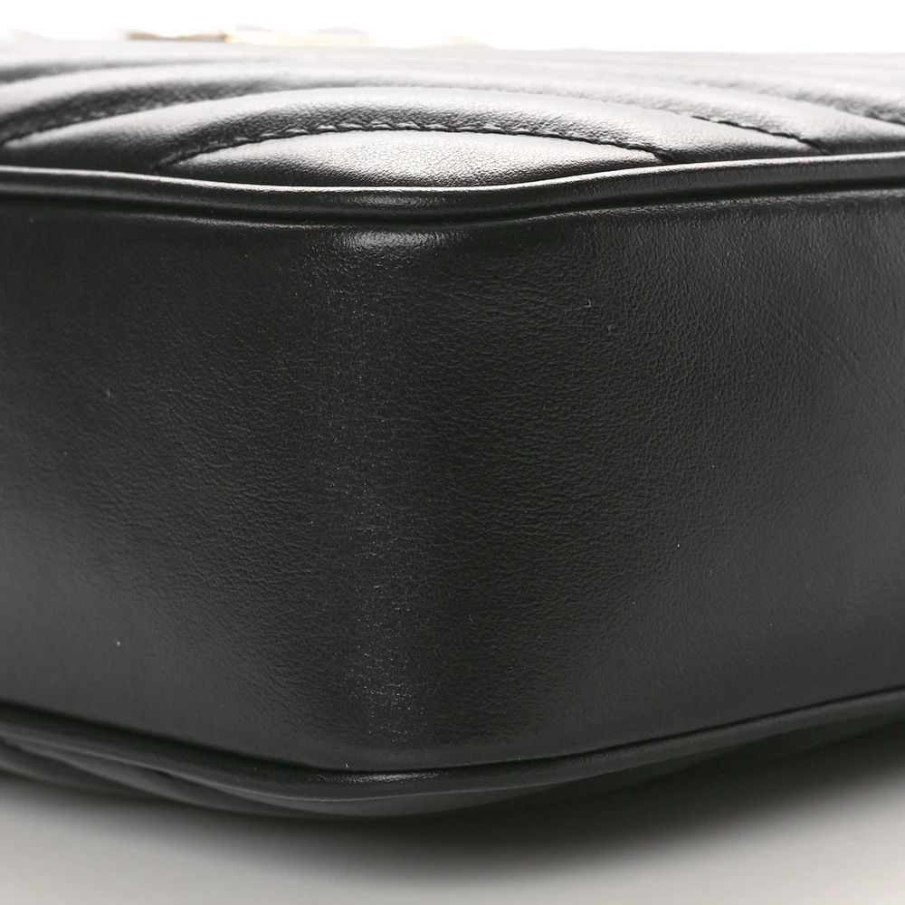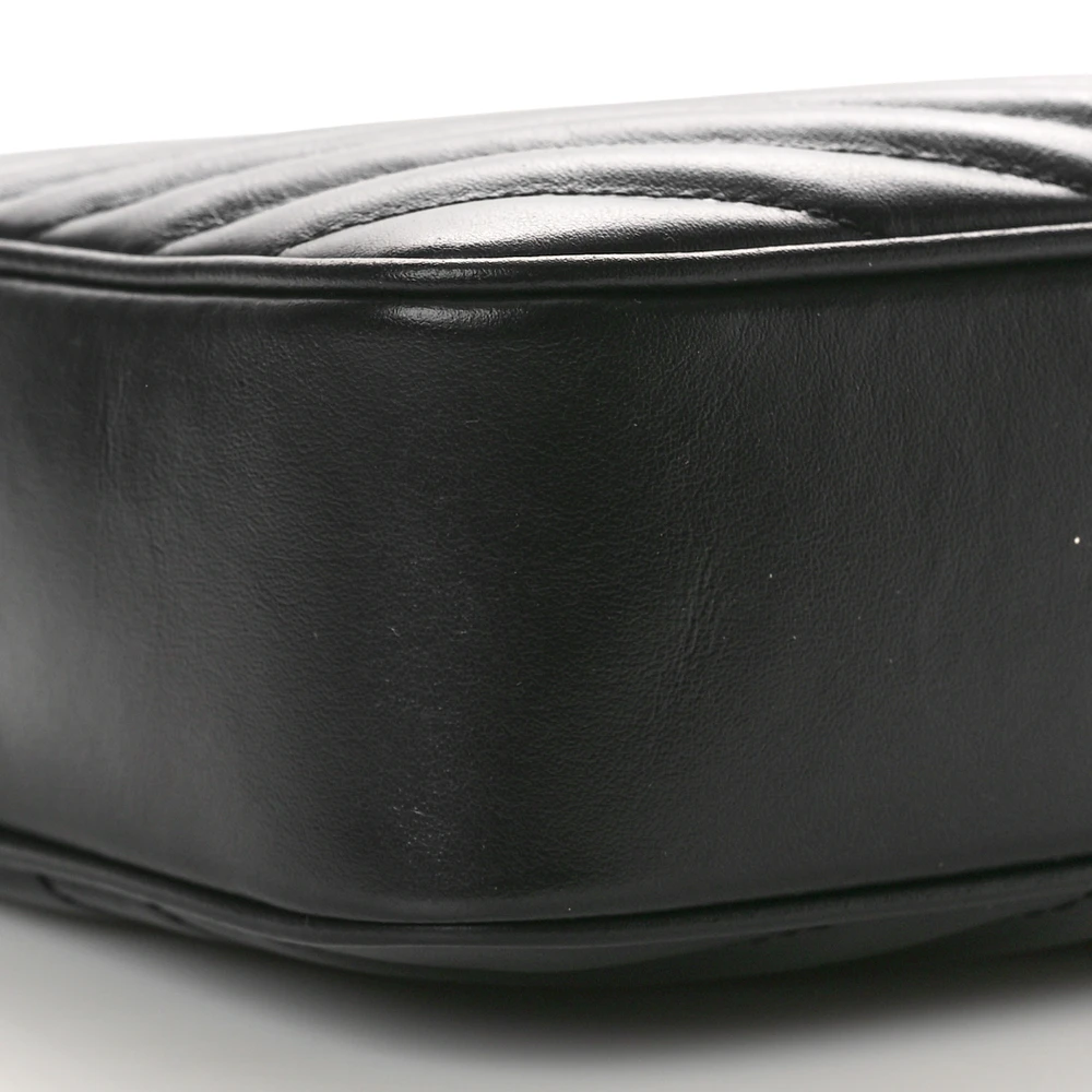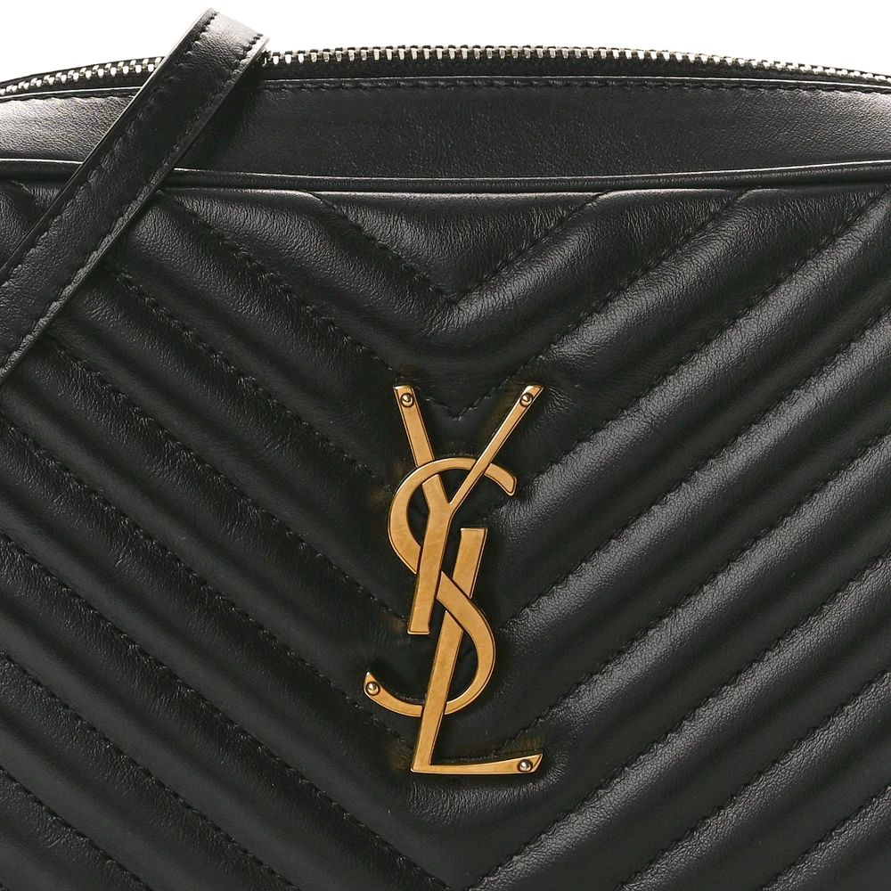 This Saint Laurent Medium Lou Camera Bag in Black combines classic design with practicality. Crafted from Monogram Calfskin Matelasse Leather and accented with aged gold hardware, it features a spacious interior for daily essentials. The adjustable strap ensures versatile styling options. A timeless accessory that complements both casual and formal ensembles effortlessly.