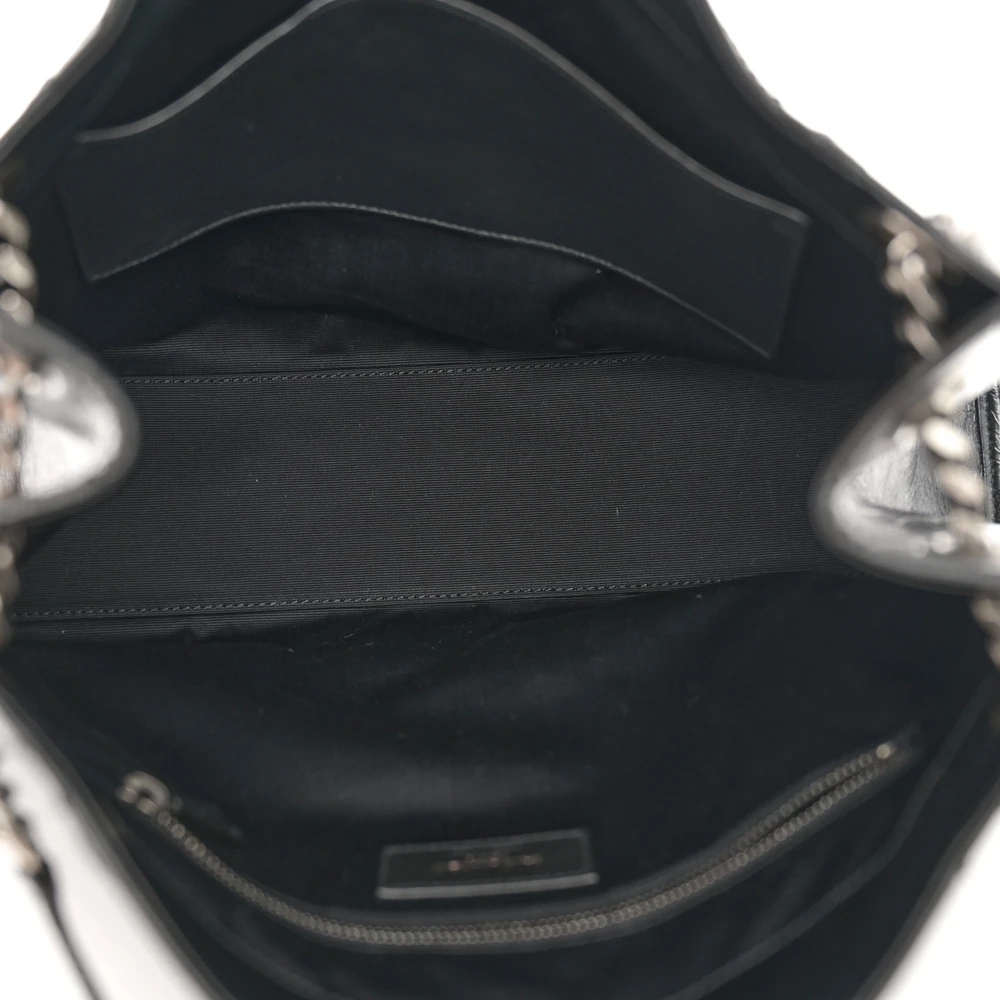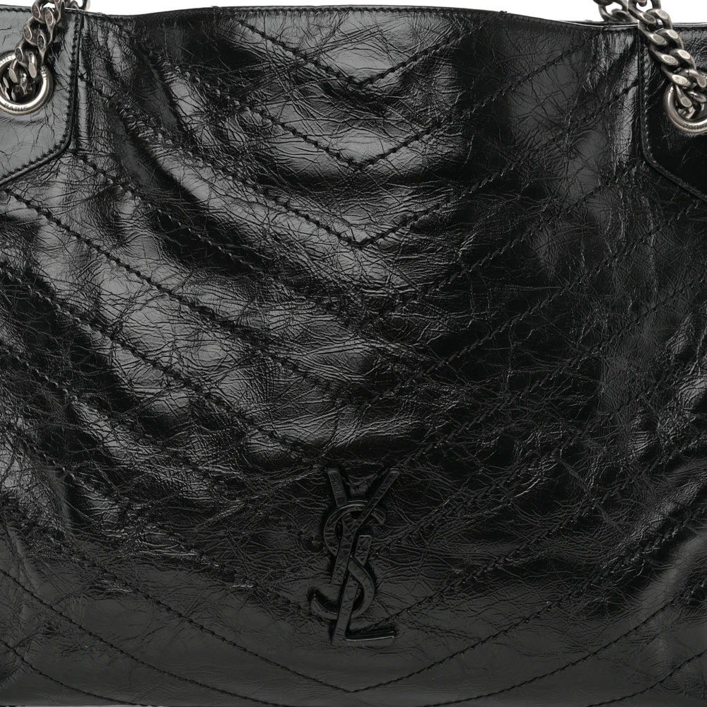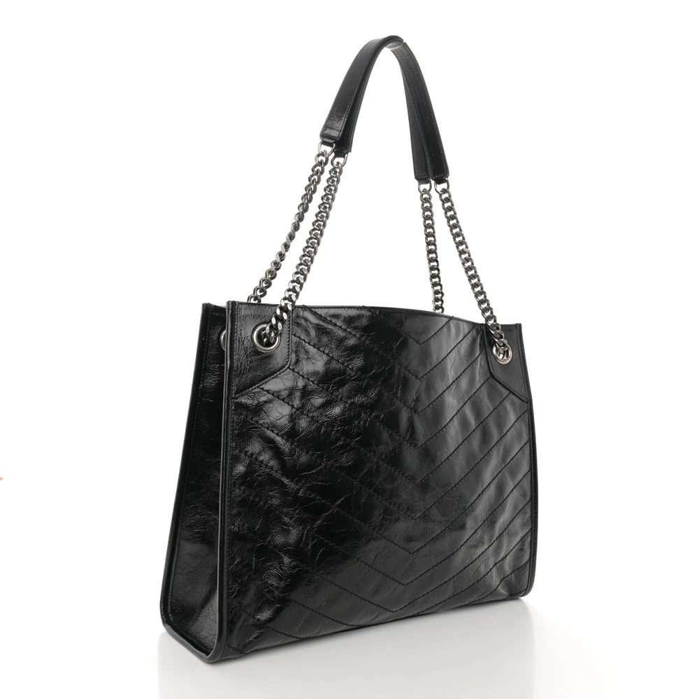 This Medium Niki Shopper Tote in Black highlights Crinkled Monogram Calfskin Matelasse Leather with silver hardware. Its spacious design is perfect for carrying essentials, making it a practical choice for work or leisure. The vintage-inspired texture adds character to the classic silhouette.