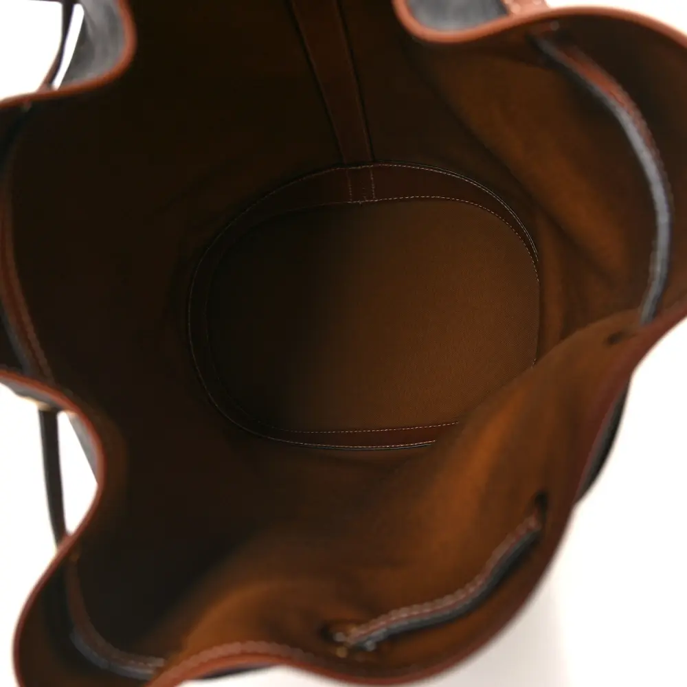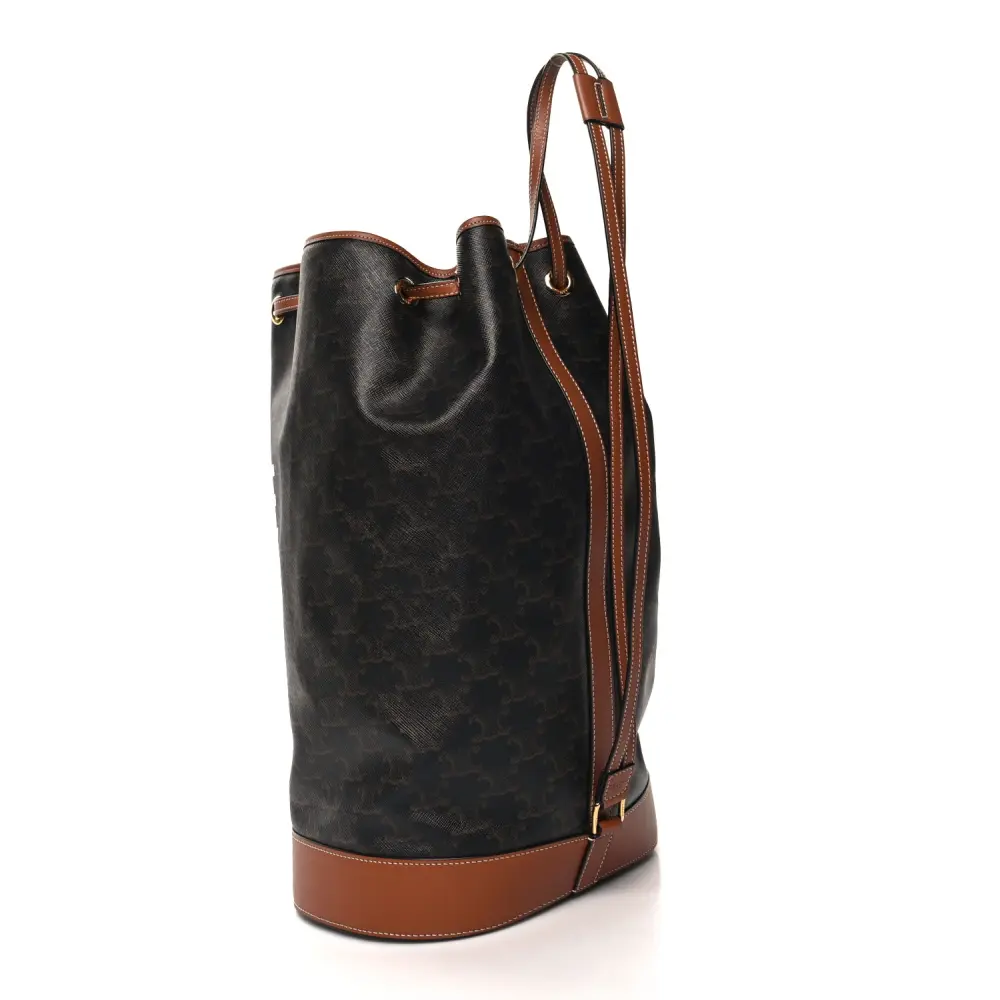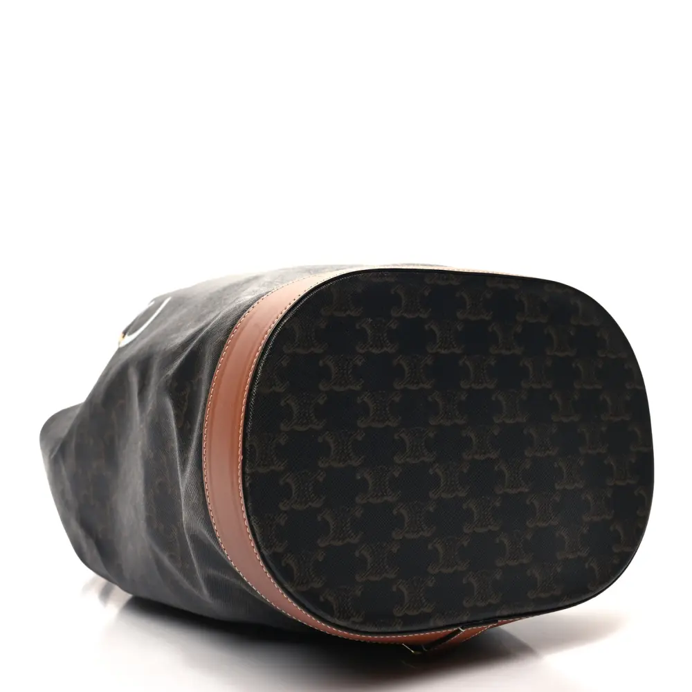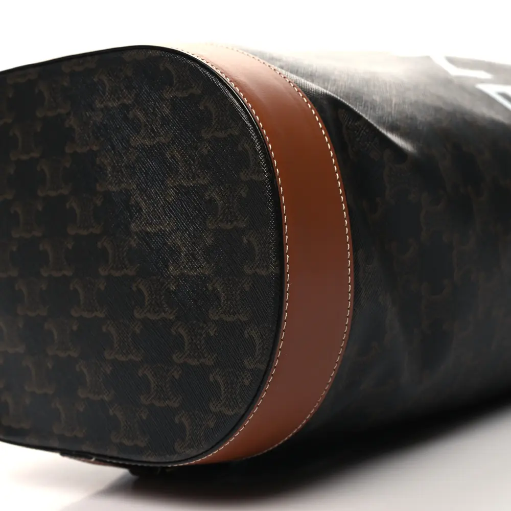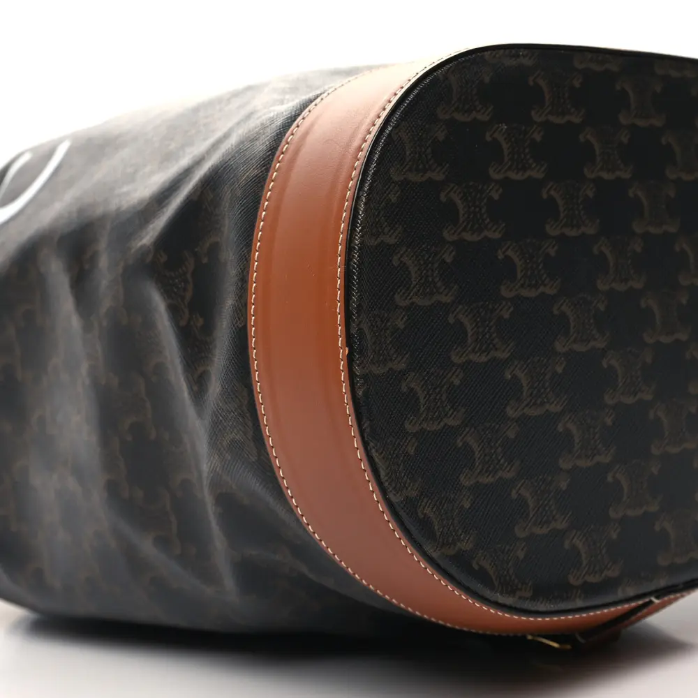 This Celine Medium Sailor Bag in Tan combines Triomphe canvas and calfskin leather. Its spacious design is perfect for daily essentials. Gold hardware complements its refined aesthetic. A chic and functional accessory for everyday wear.