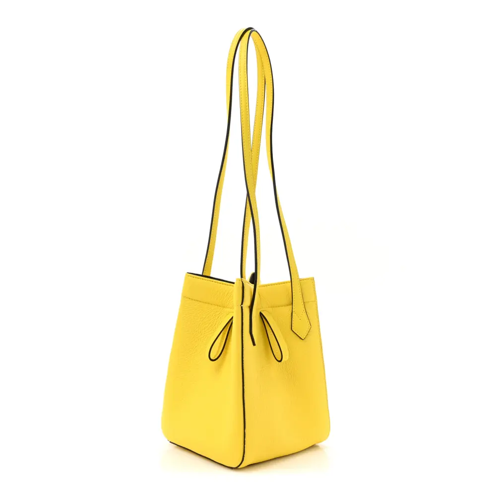 This Fendi Mini Fendi Origami in Yellow features Cuoio Romano Selleria Leather. Gold hardware adds sophistication to its bold design. Compact yet spacious enough for essentials. Unique folding design sets it apart. Perfect for casual outings or artistic events. A statement piece for creative and stylish individuals.