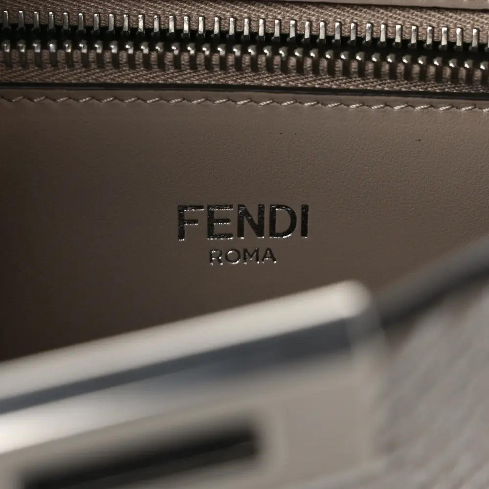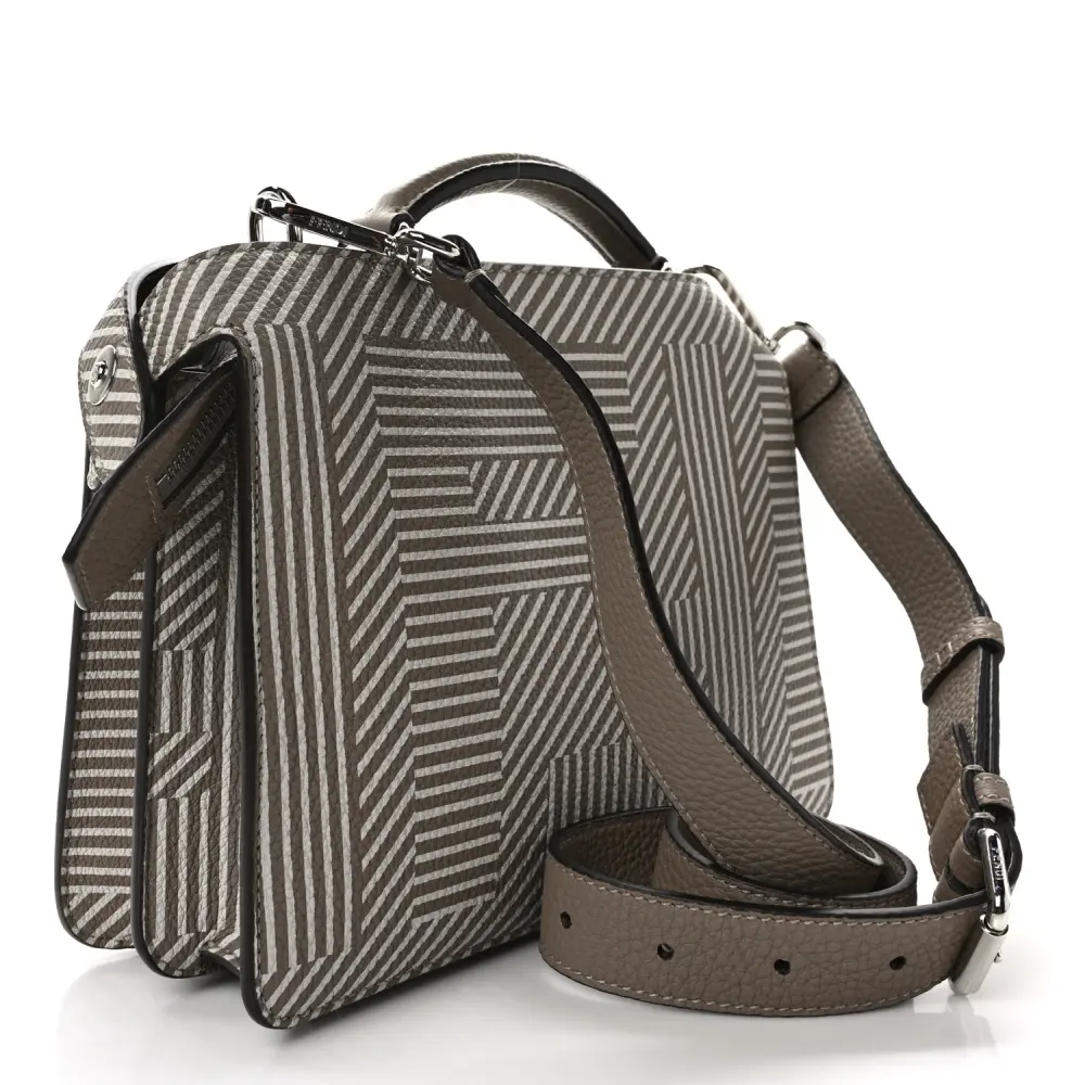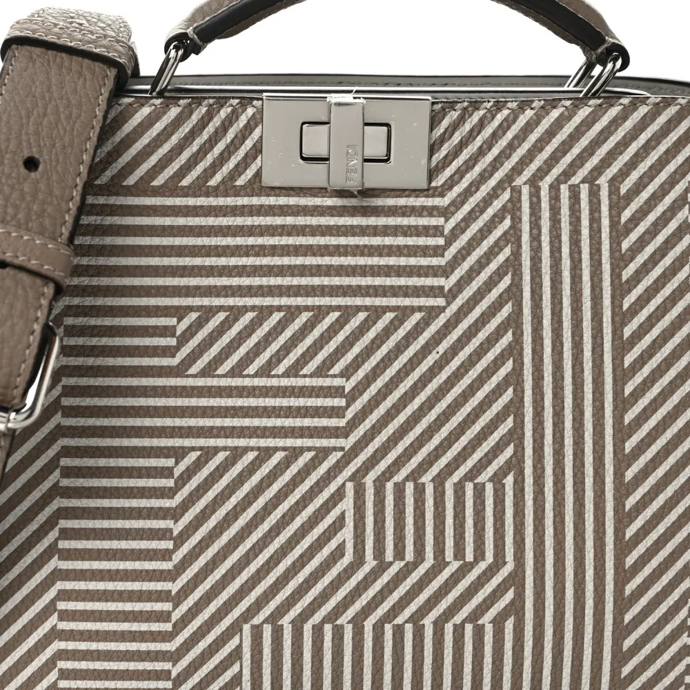 This Fendi Mini Peekaboo I SEE U Satchel in Ghianda is bold. Bicolor Striped Macro FF Cuoio Romano Leather adds charm. Silver hardware completes its structured and modern design. Compact yet spacious for your essentials. Perfect for casual outings or special occasions. Chic and functional for the contemporary wardrobe.