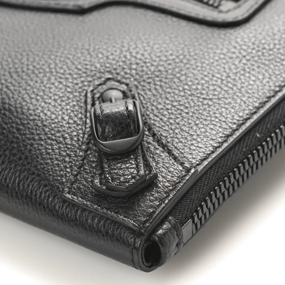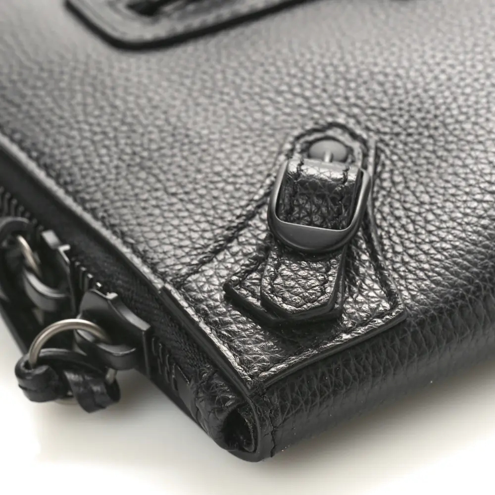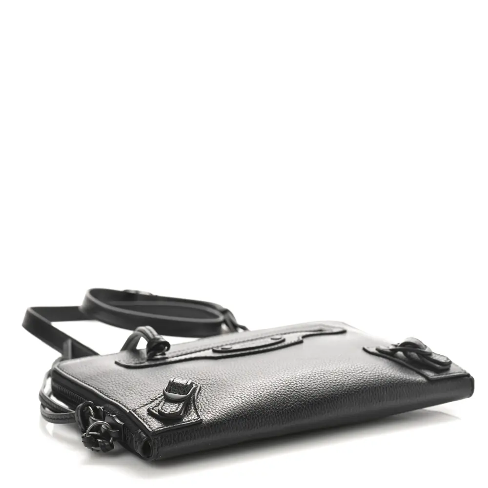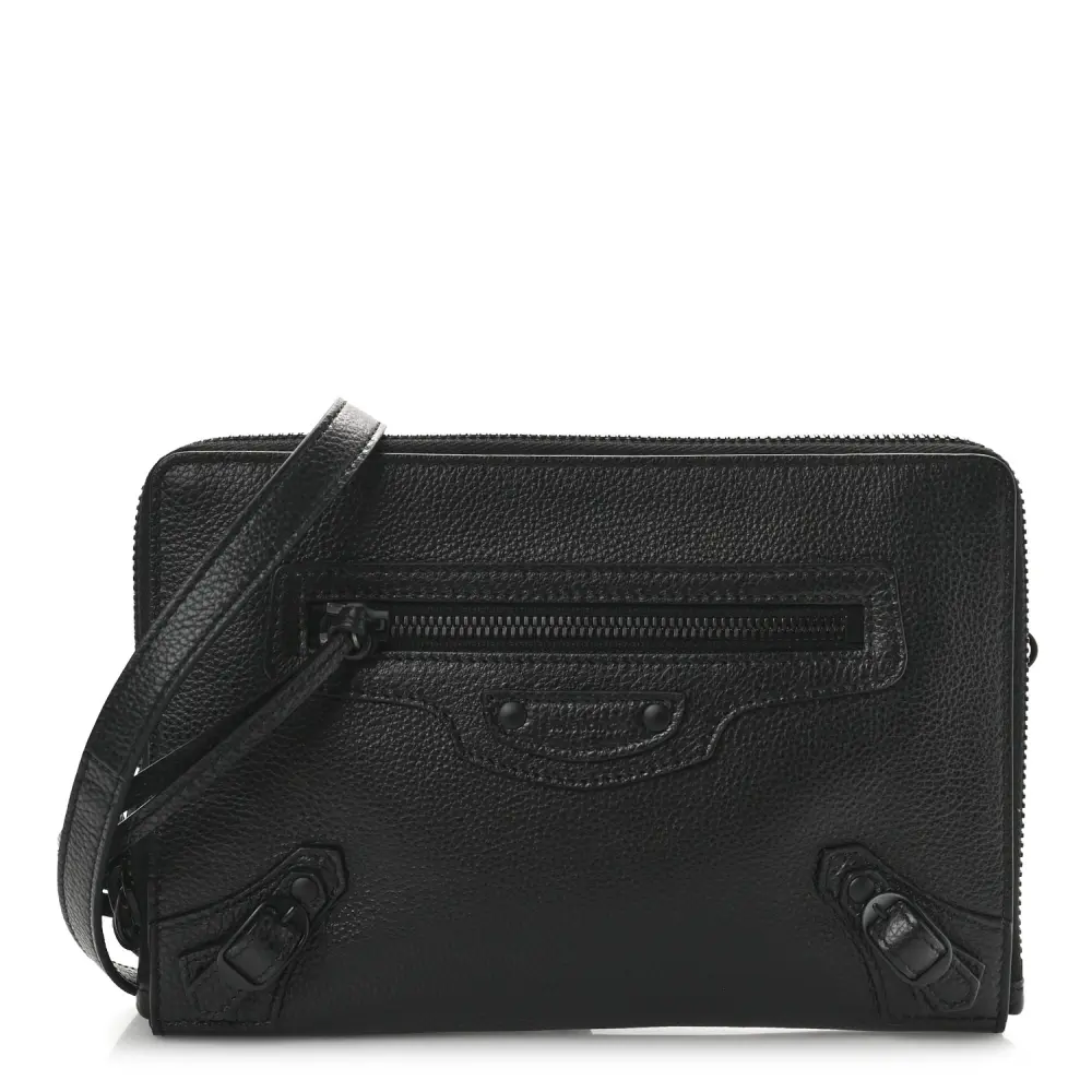 This Balenciaga Small Neo Classic Zip-Around Crossbody Bag in Black is made from grained calfskin leather with tonal black hardware for a sophisticated, understated look. Its structured design provides both functionality and style. The zip-around closure ensures security while the adjustable strap offers versatile carrying options. Ideal for daily use or travel.