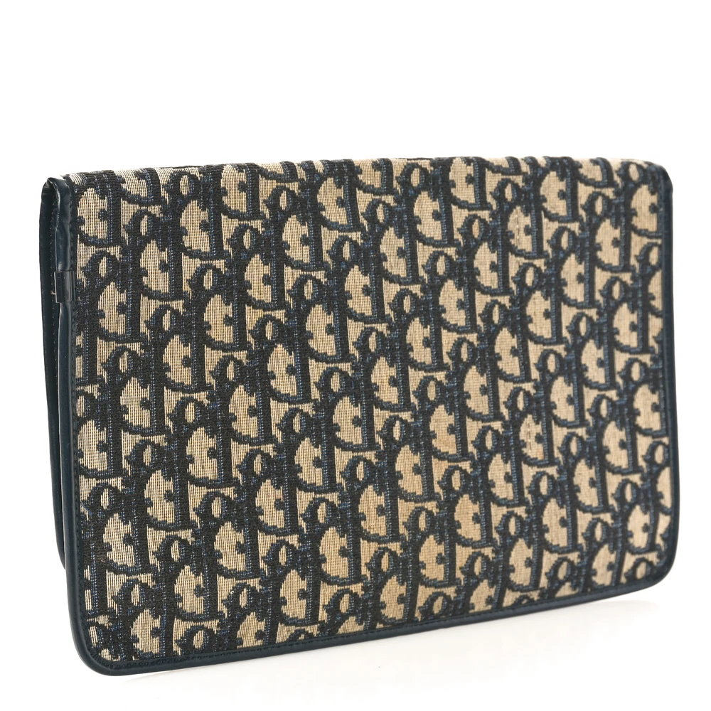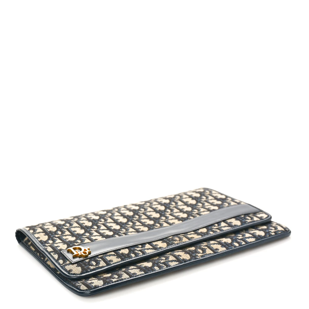 This Dior Medium Flap Clutch in Navy Blue Monogram Canvas is a timeless and elegant accessory. Gold hardware adds a luxurious touch to its classic design. Compact yet spacious, it’s perfect for evening events or casual outings. The iconic monogram canvas showcases Dior’s signature style. A versatile piece to elevate any outfit. Add this sophisticated clutch to your collection.
