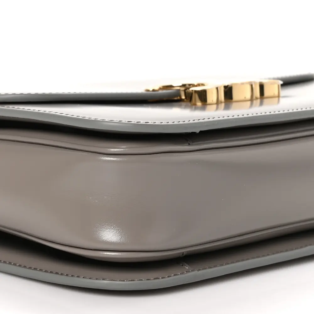 This Celine Medium Triomphe Bag in Pebble is crafted from shiny calfskin leather with gold hardware. Its structured design adds a modern touch to any outfit. Spacious and functional, it’s ideal for everyday essentials. The adjustable strap offers versatile styling. A refined choice for contemporary elegance.