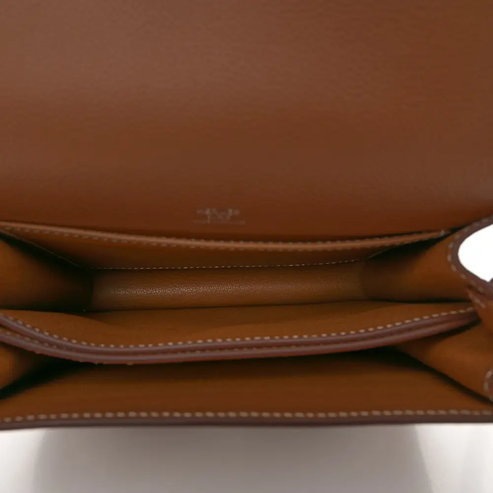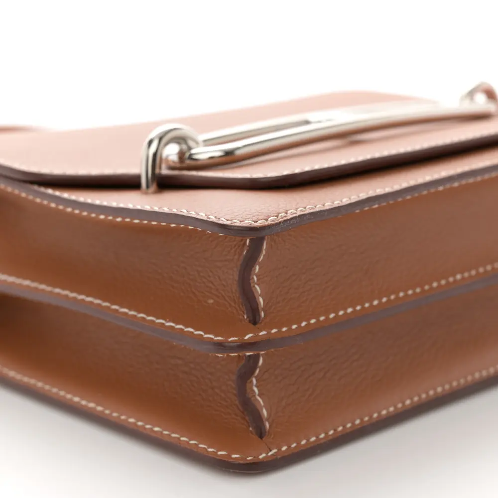 This Hermès Mini Sac Roulis in Brown Evercolor Leather is the epitome of elegance. The smooth leather is paired with palladium silver hardware for a polished finish. Compact yet spacious, it’s perfect for carrying your essentials. The structured design exudes timeless sophistication. A versatile crossbody for casual and formal occasions. A chic addition to your luxury collection.