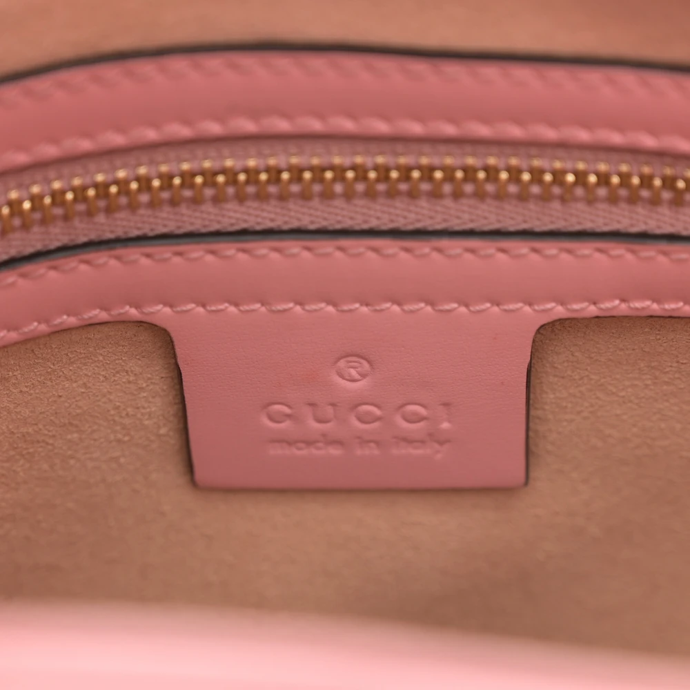 This Gucci Small Jackie 1961 Hobo Bag is crafted in wild rose Dyana Lux calfskin leather. Gold hardware adds a classic touch. Spacious yet chic for carrying daily essentials. A stylish and iconic design for versatile use. Perfect for both casual and formal settings.