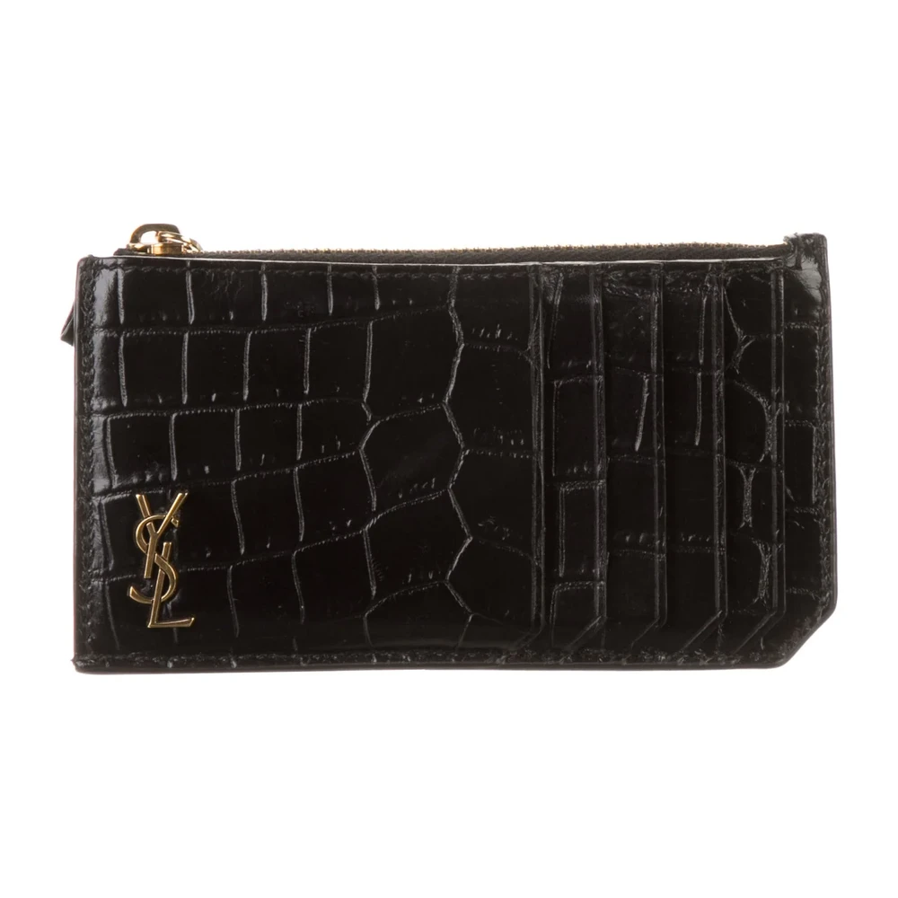This Saint Laurent Small Wallet is a sleek and sophisticated addition to your collection. Crafted from black embossed calfskin leather, it features a textured finish that exudes luxury. The gold hardware complements its classic design, making it perfect for everyday use. Compact yet functional, it’s ideal for organizing your essentials. This wallet conveys modern elegance with iconic appeal.