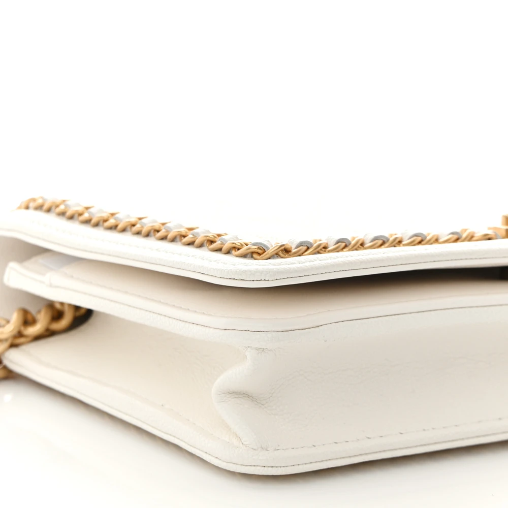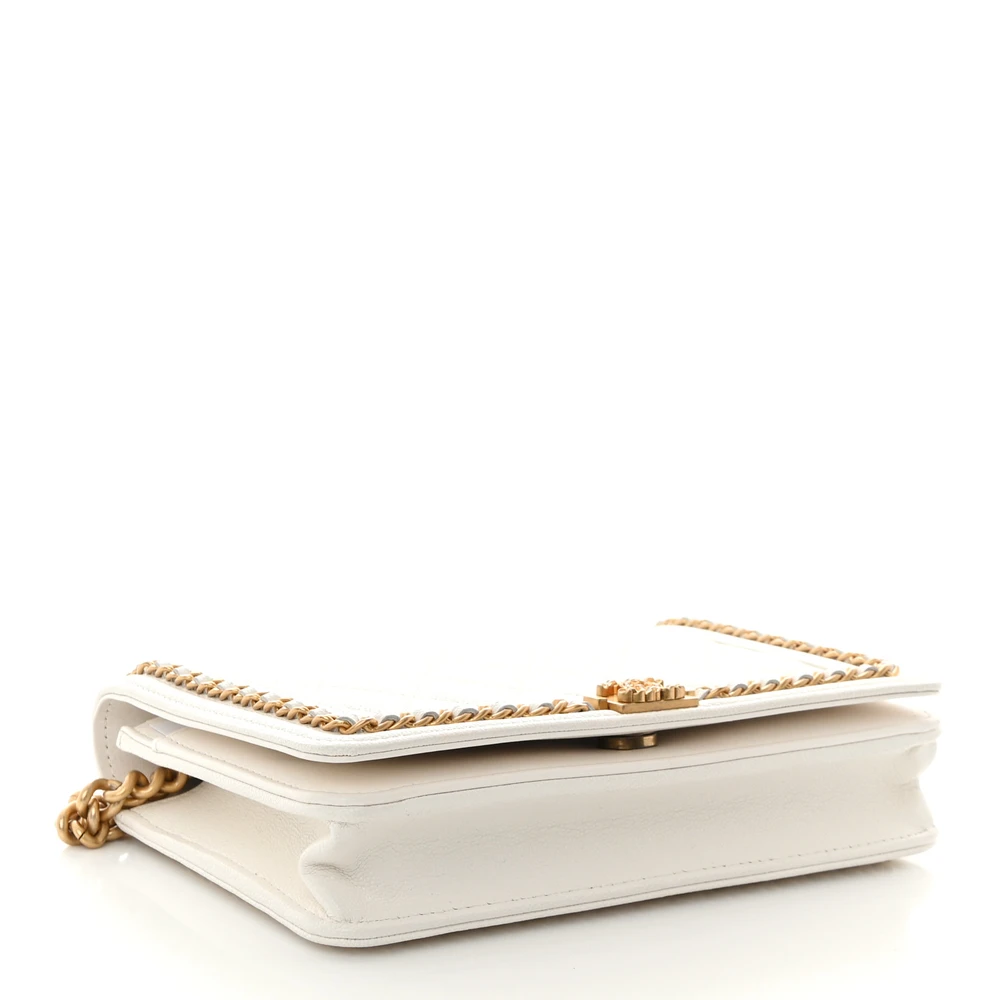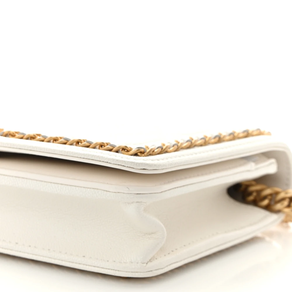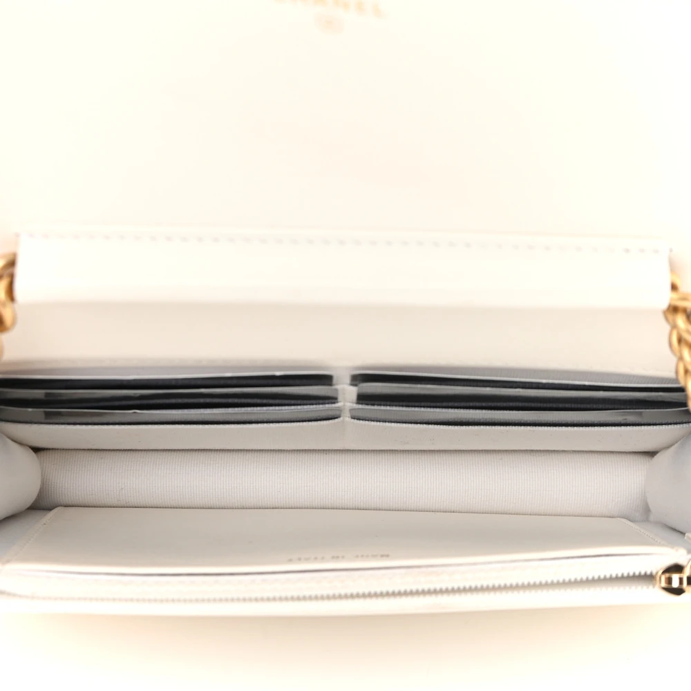 This Chanel Chain Around Boy Wallet On Chain (WOC) Small in White Quilted Caviar Leather with Silver Hardware is a modern and stylish accessory. The durable caviar leather showcases Chanel’s iconic quilting. Silver hardware adds a sleek contrast to the white design. Compact yet functional, it’s perfect for carrying cards and small essentials. The chain strap offers versatile carrying options. A chic choice for day or night.