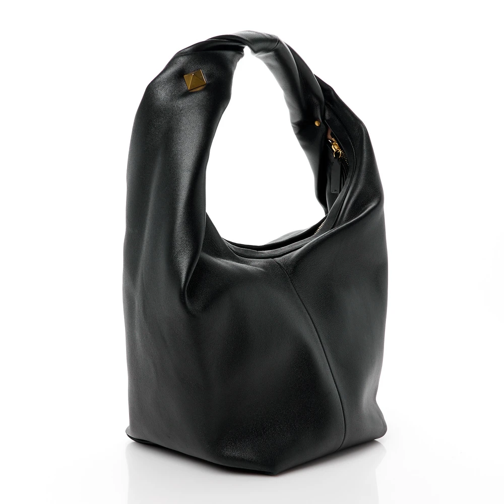 This Valentino Garavani Large Roman Stud Hobo in Black is bold and sophisticated. Made from nappa leather for a luxurious feel. Spacious design for work or leisure needs. Roman stud accents add an iconic edge. A statement bag for modern wardrobes. Versatile for any occasion.