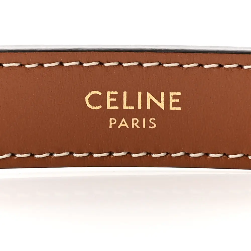 This Celine Medium Ava Triomphe Shoulder Bag in White combines canvas and calfskin leather with gold hardware. Its curved silhouette adds modern sophistication. Spacious enough for essentials, it’s perfect for daily use. The adjustable strap ensures comfortable, versatile wear. A chic, contemporary choice.