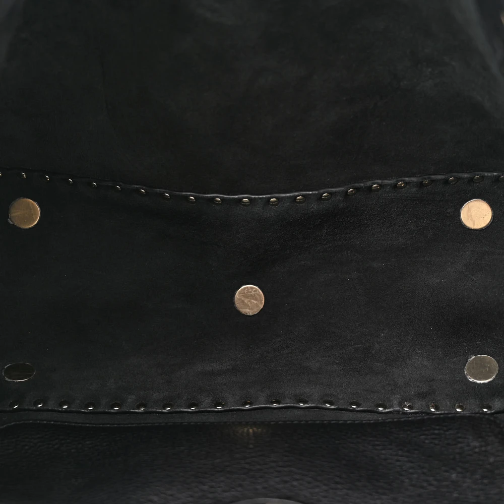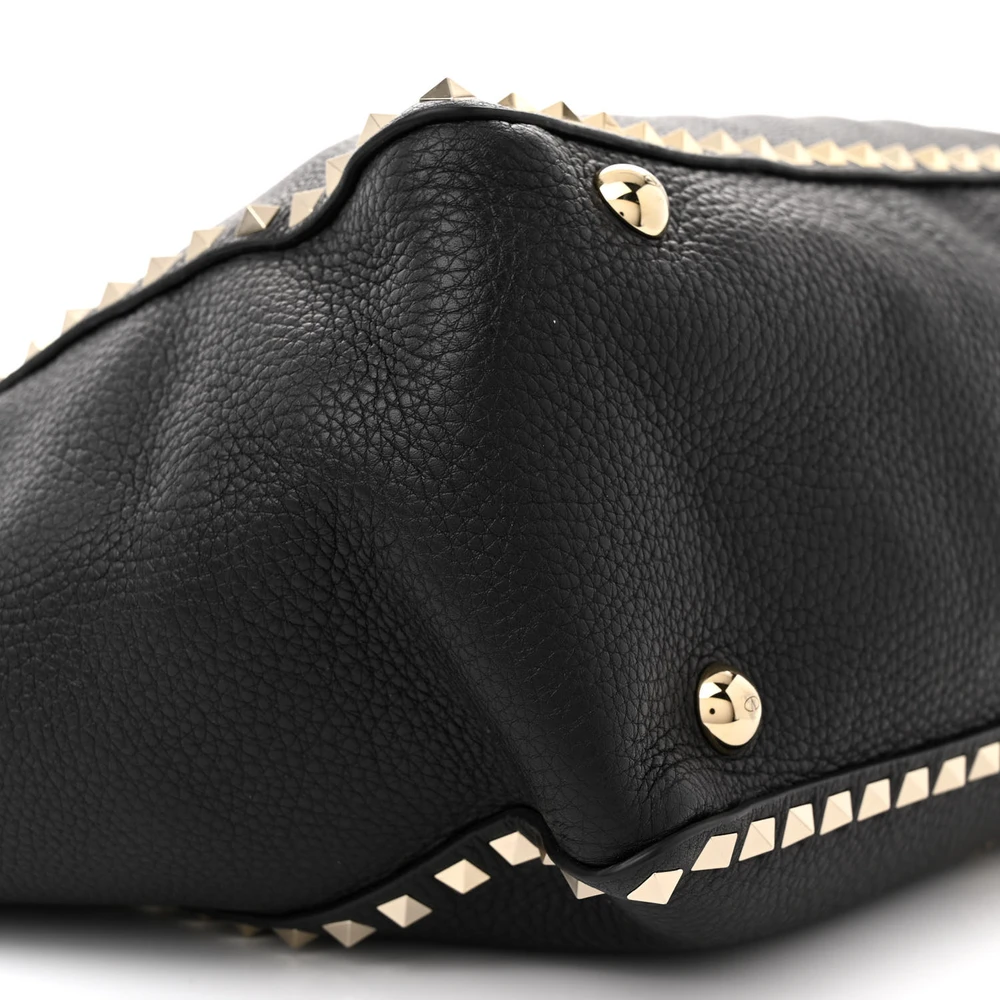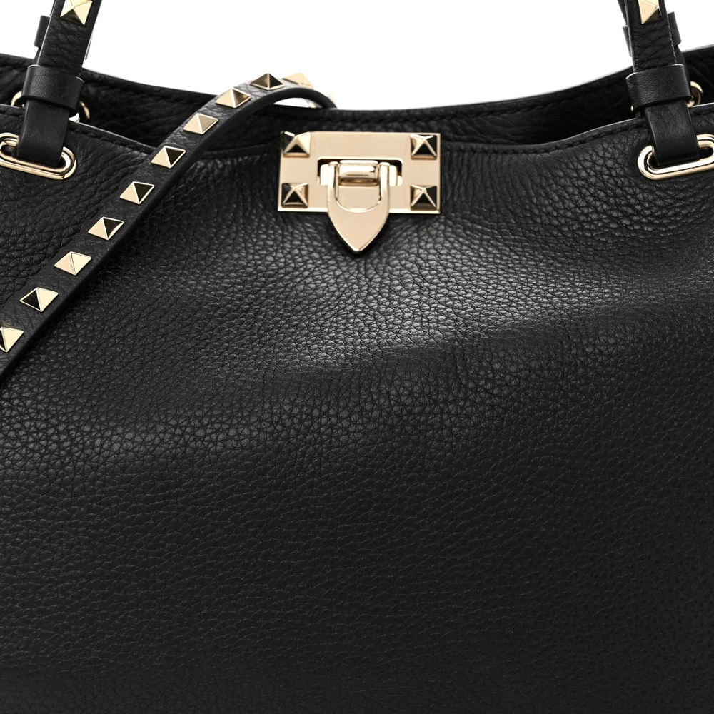 This Valentino Garavani Medium Rockstud Tote in Black is bold and functional. Pebbled calfskin leather with gold hardware offers a luxe finish. Spacious for daily essentials or work needs. Rockstud accents add edgy sophistication. Perfect for casual outings or formal events. A durable and stylish tote.