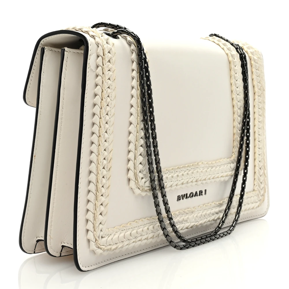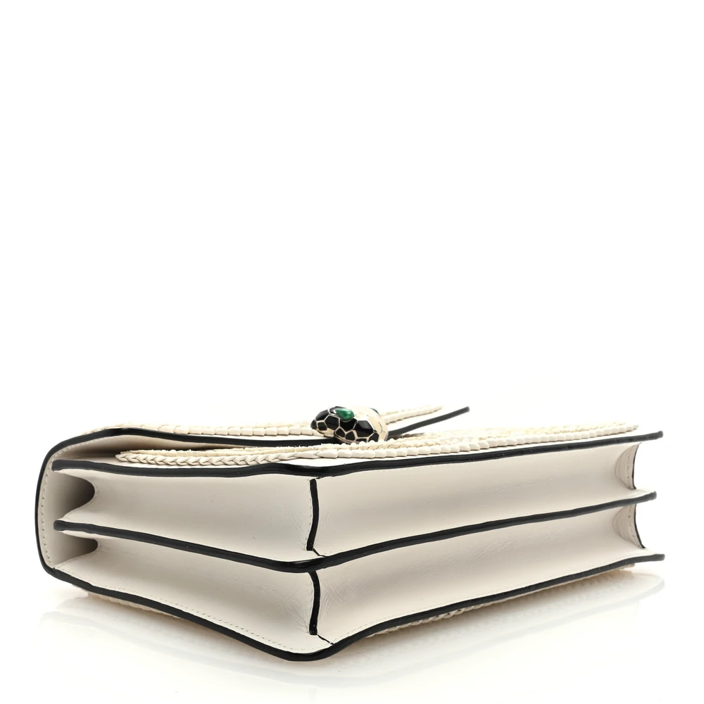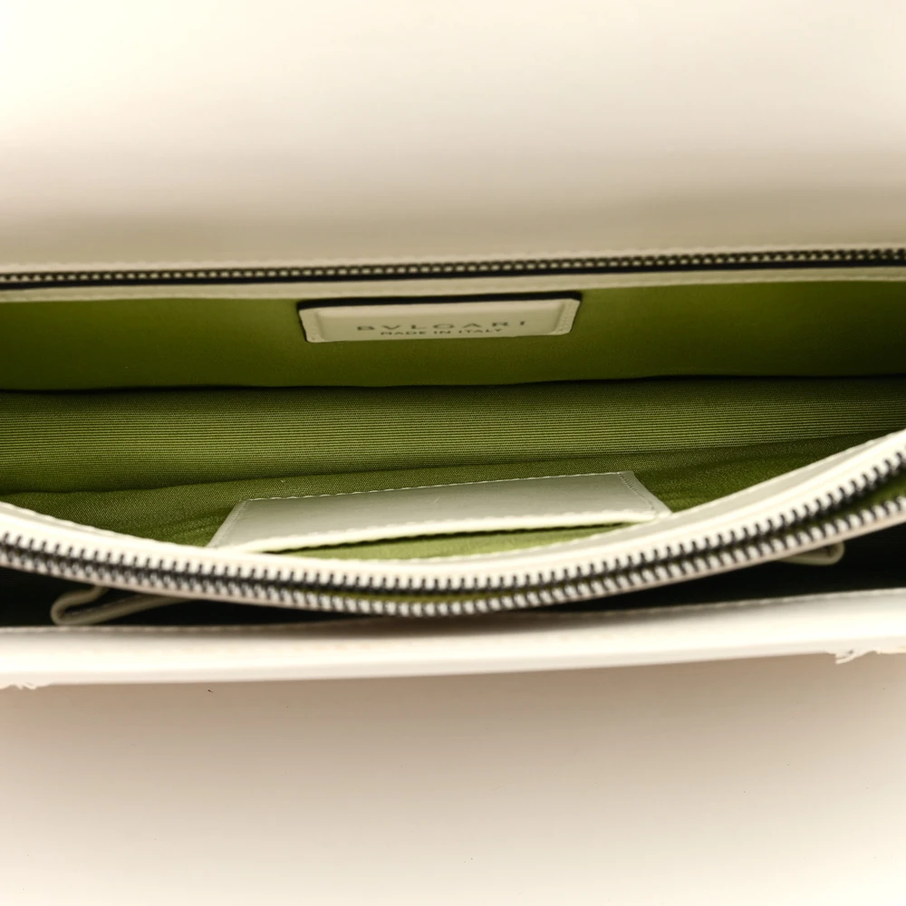 This Bvlgari Medium Serpenti Forever Shoulder Bag in White is the epitome of understated elegance. Crafted from supple calfskin leather, it is adorned with the iconic Serpenti clasp in sleek silver hardware. The medium size ensures practicality, offering ample space for your essentials while maintaining a refined silhouette. Its versatile white hue complements both casual and formal ensembles effortlessly. Elevate your accessory collection with this timeless and sophisticated design.