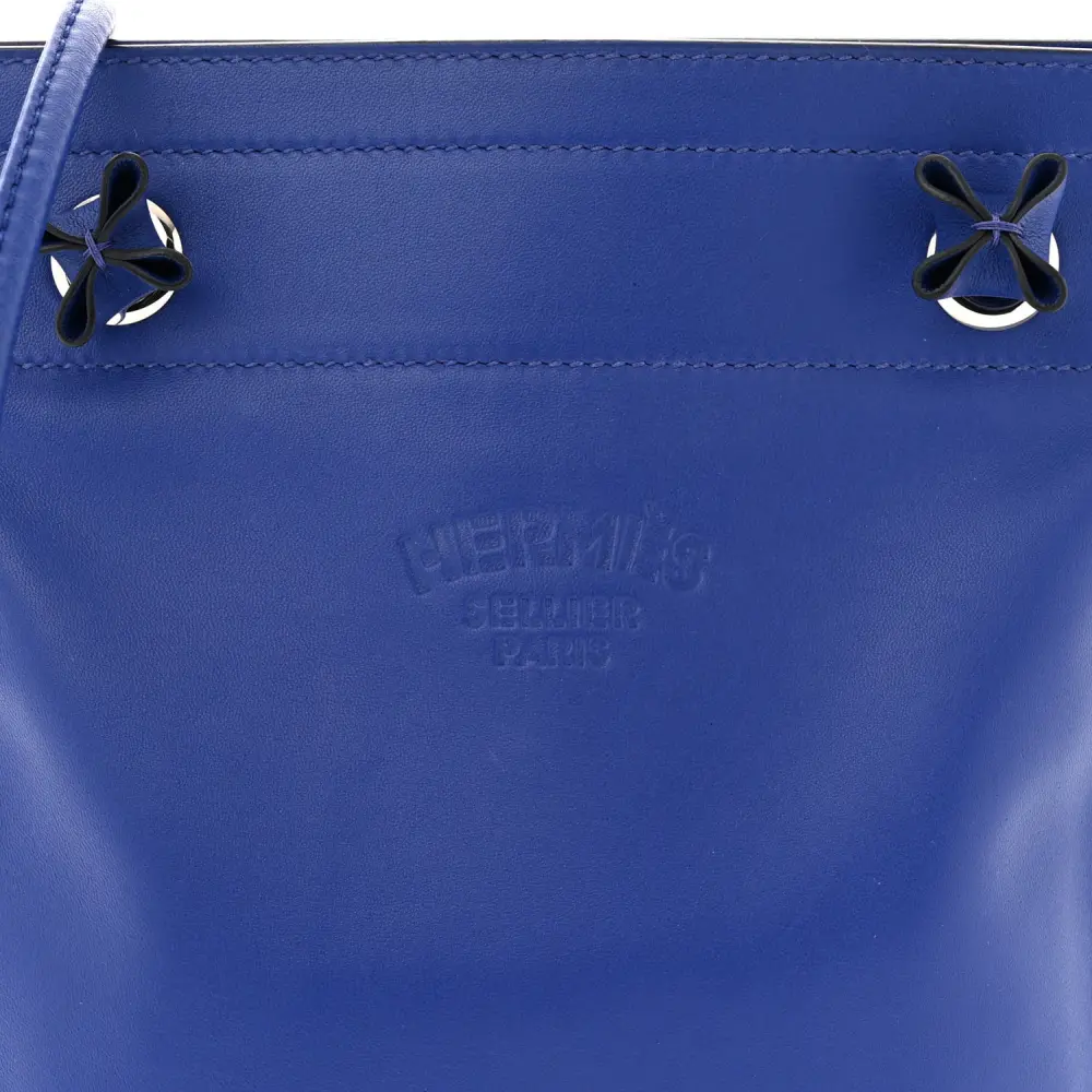 This Hermès Mini Aline in Bleu Électrique Milo Lambskin & Swift leather is a compact and chic bag. Its vibrant blue hue is both bold and stylish, perfect for making a statement. The lightweight design is complemented by a simple strap for easy carrying. Crafted from smooth lambskin and Swift leather, it offers a luxurious feel. Its minimalist design is ideal for casual outings or travel. A trendy addition to your accessory lineup.