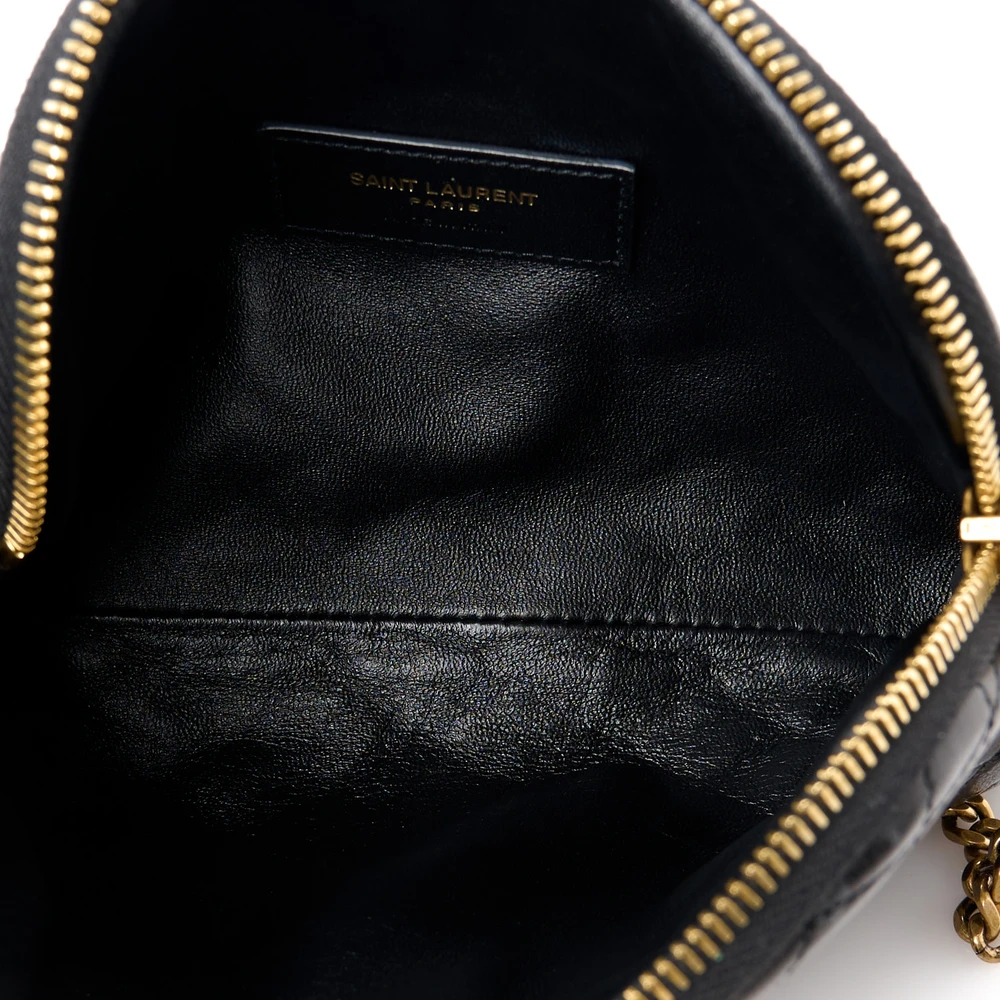 This Mini Gaby Zipped Pouch in Black features Quilted Lambskin Leather with aged gold hardware. Sleek and functional, it provides a chic way to carry small essentials. Its compact design makes it perfect for slipping into a larger bag or carrying solo for minimalist elegance.