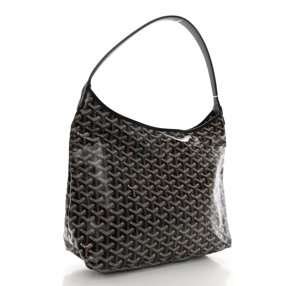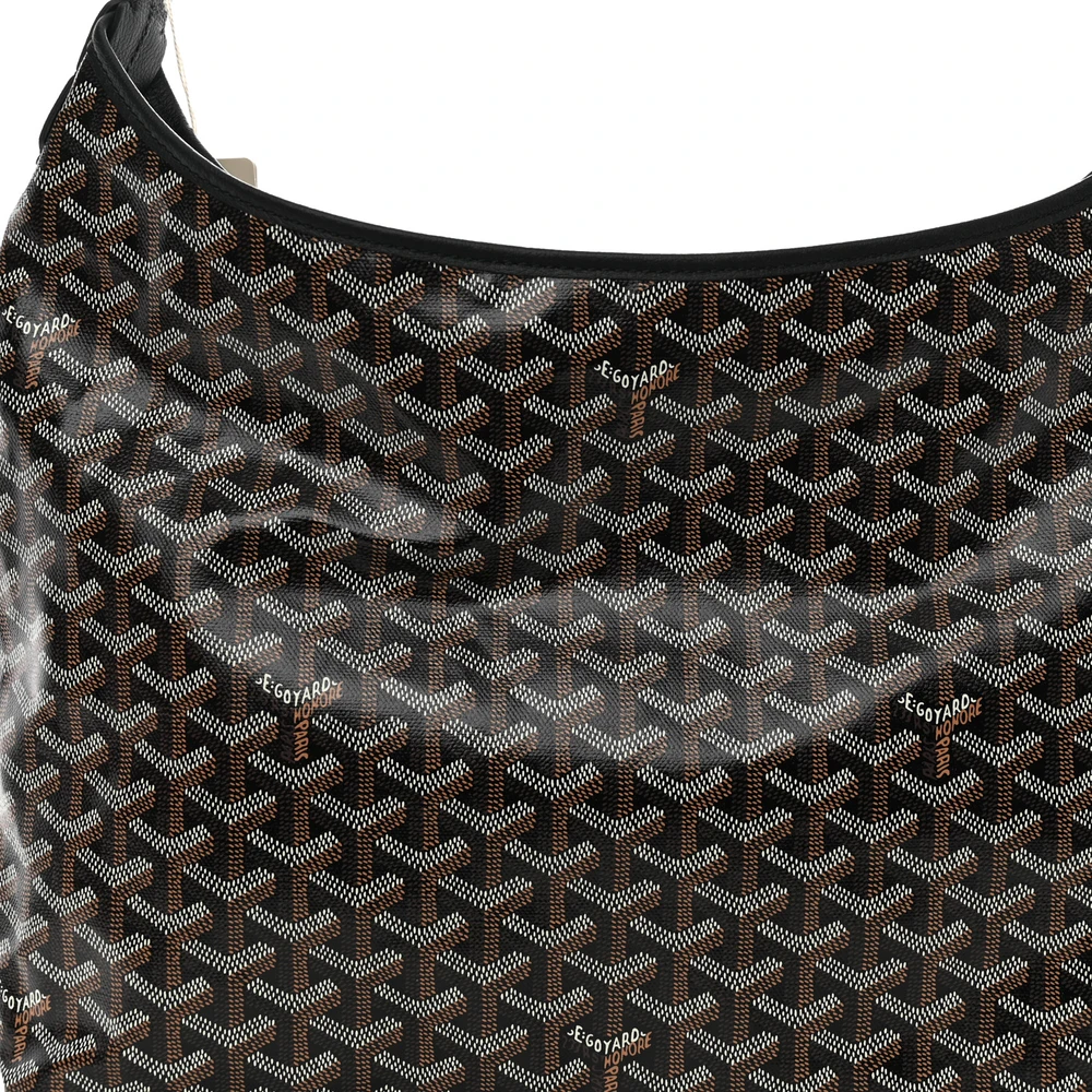This Goyard Boheme Hobo PM in Black features the iconic Goyardine canvas with a sleek and minimalist silhouette. Its compact size and comfortable shoulder strap make it perfect for daily use. The timeless black tone adds versatility and elegance. A refined choice for casual outings.