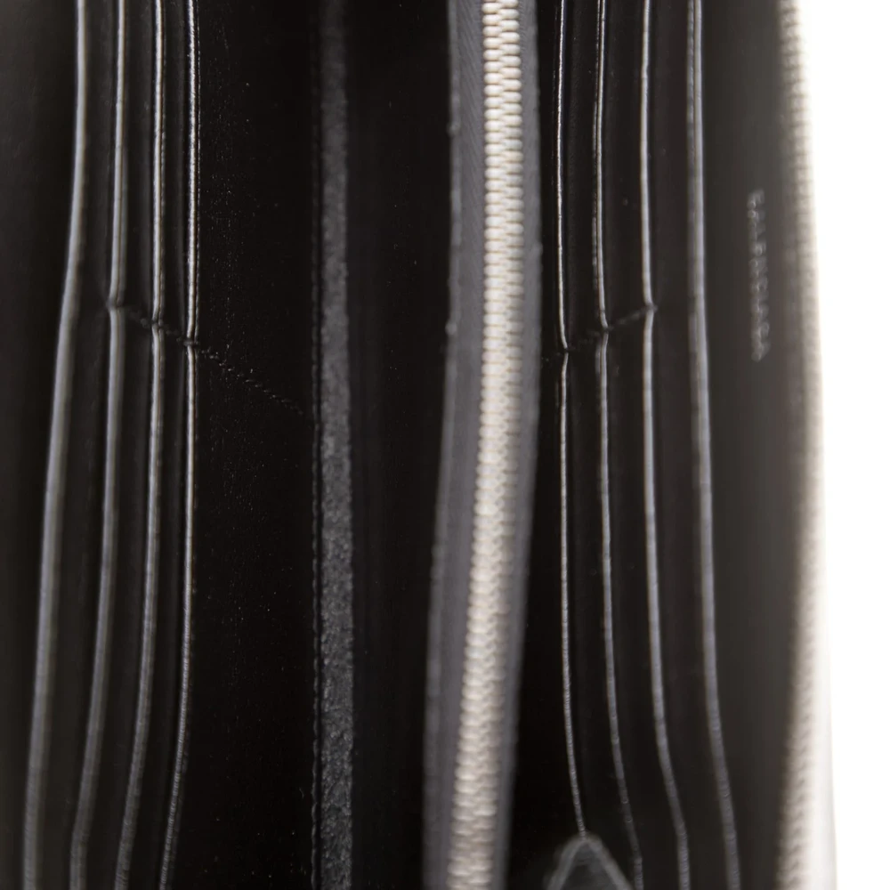 This Balenciaga Large Continental Wallet is a bold and statement-making piece. Crafted from silver lambskin leather, it features a sleek and textured design. The Silver Hardware adds an edgy and modern twist to its luxurious appeal. Spacious and functional, itβs ideal for organizing essentials. This wallet conveys refined luxury with a daring edge.