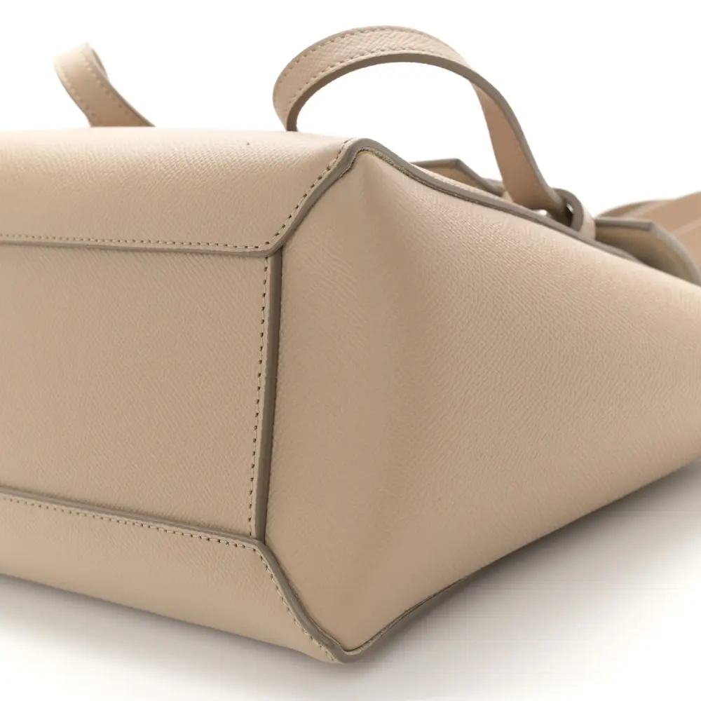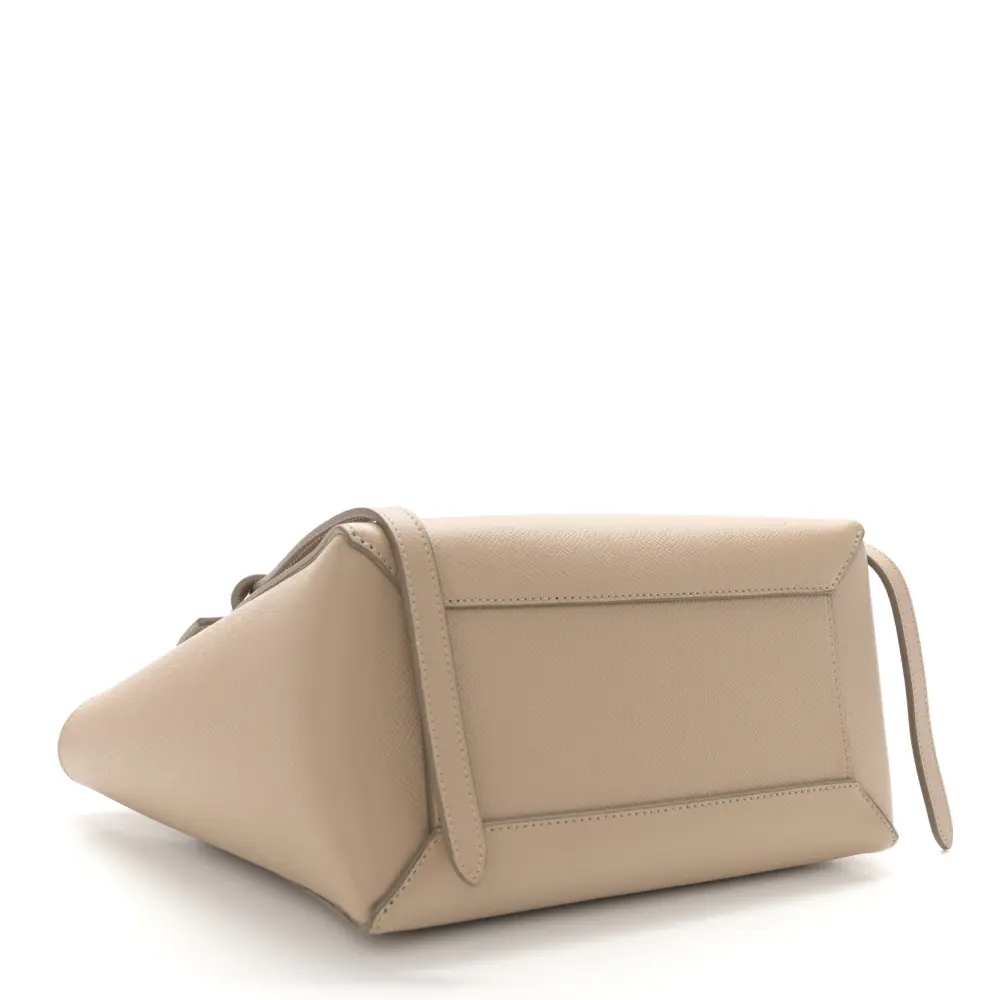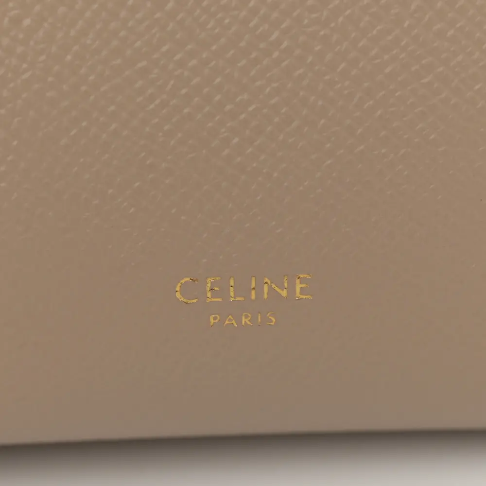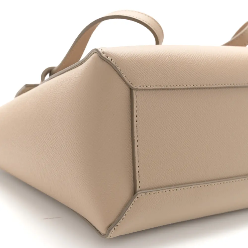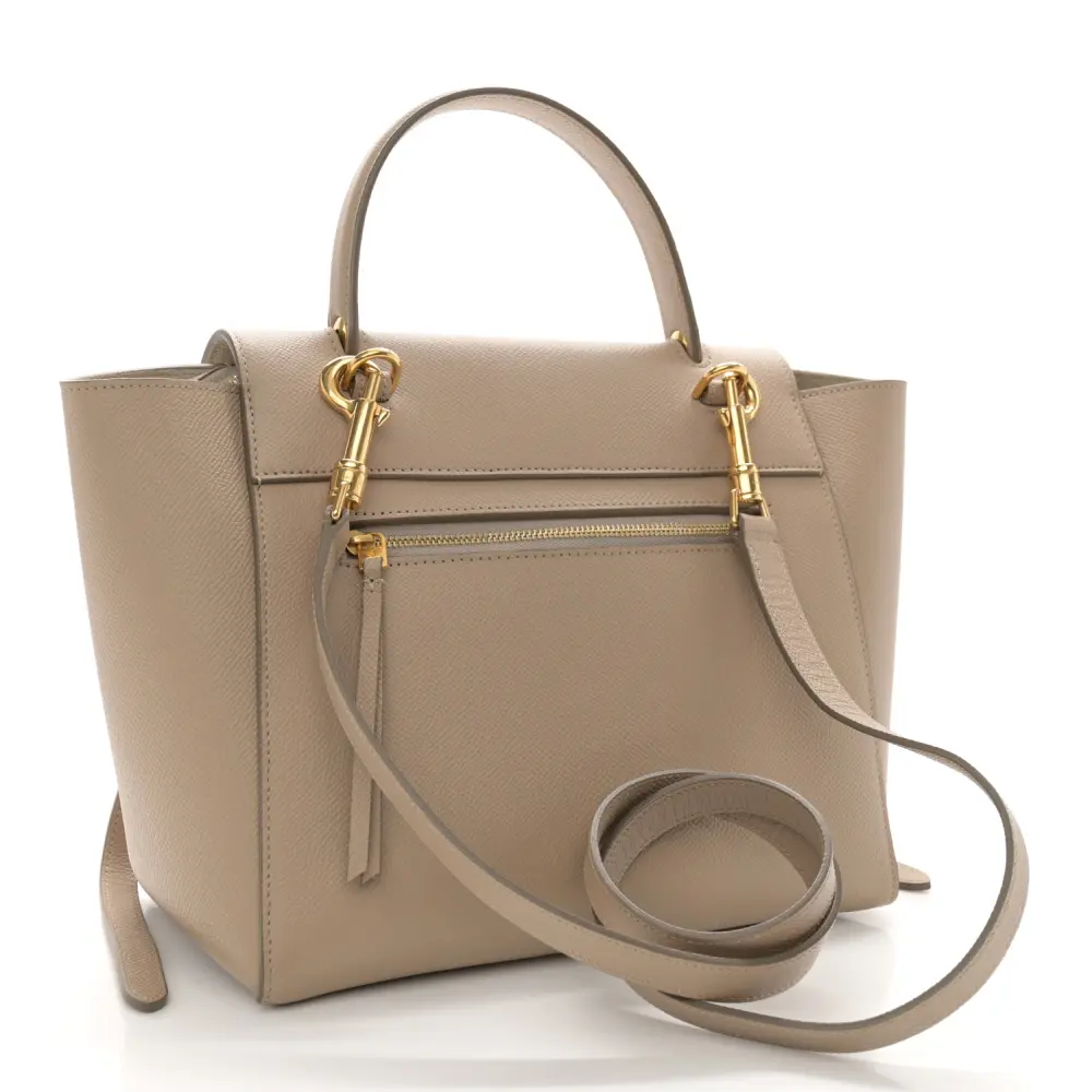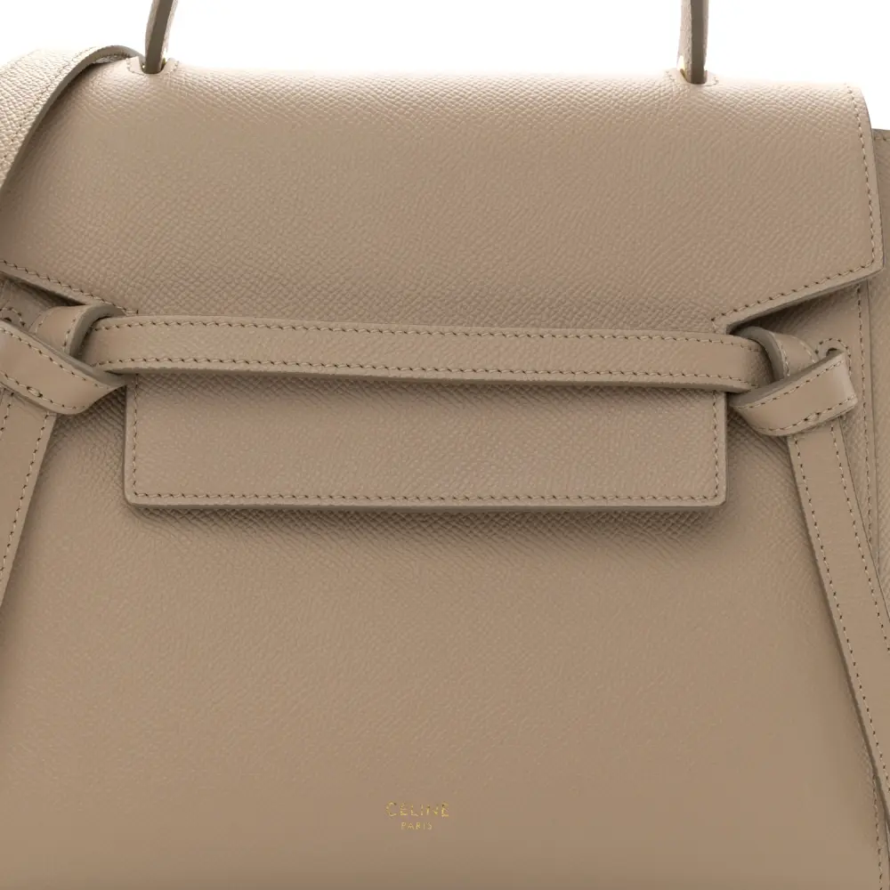 This Celine Micro Belt Bag in Dune features grained calfskin leather with gold hardware accents. The structured design includes a top handle and flap closure. Spacious and practical, it’s perfect for daily use. An adjustable strap offers versatility for crossbody wear. A sleek, timeless accessory for any outfit.