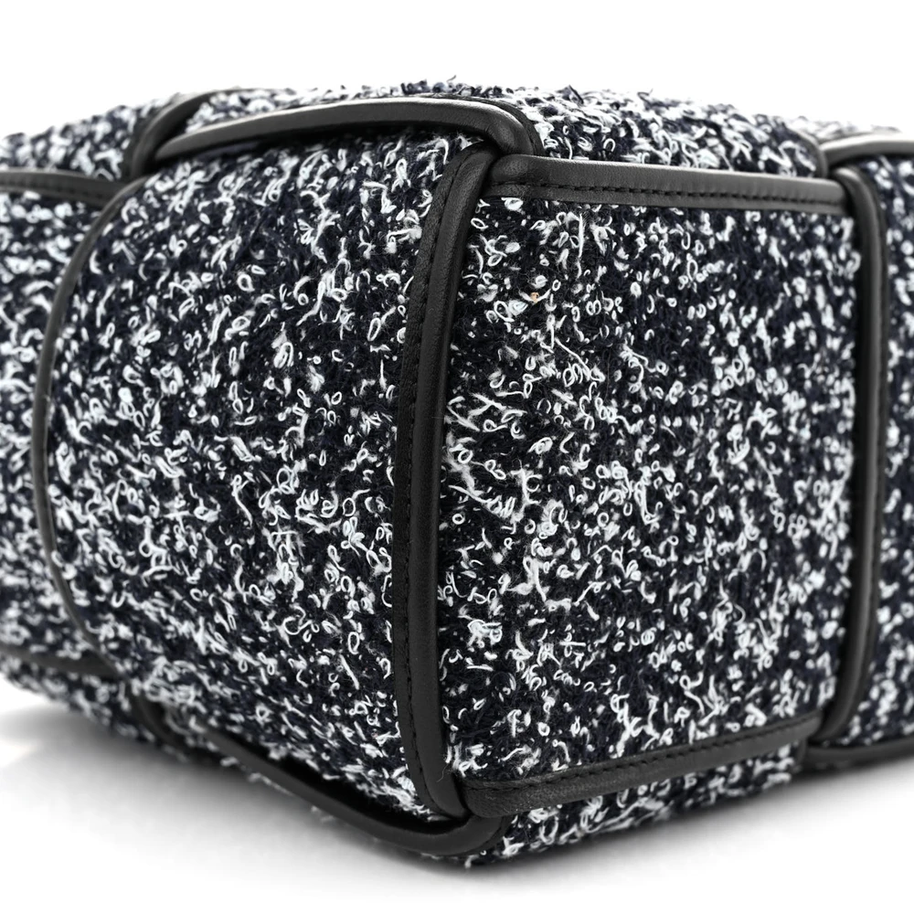 This Bottega Veneta Maxi Intrecciato Small Arco Tote in Midnight Blue offers a contemporary twist on a classic silhouette. Made from denim boucle fabric, its woven texture and bold blue tone make it a standout accessory. The spacious interior is perfect for carrying your essentials in style. Its structured design and comfortable handles ensure both elegance and practicality. A must-have for those who appreciate unique, artisanal craftsmanship.