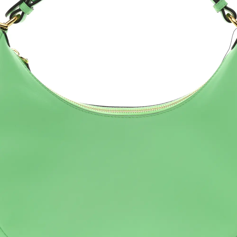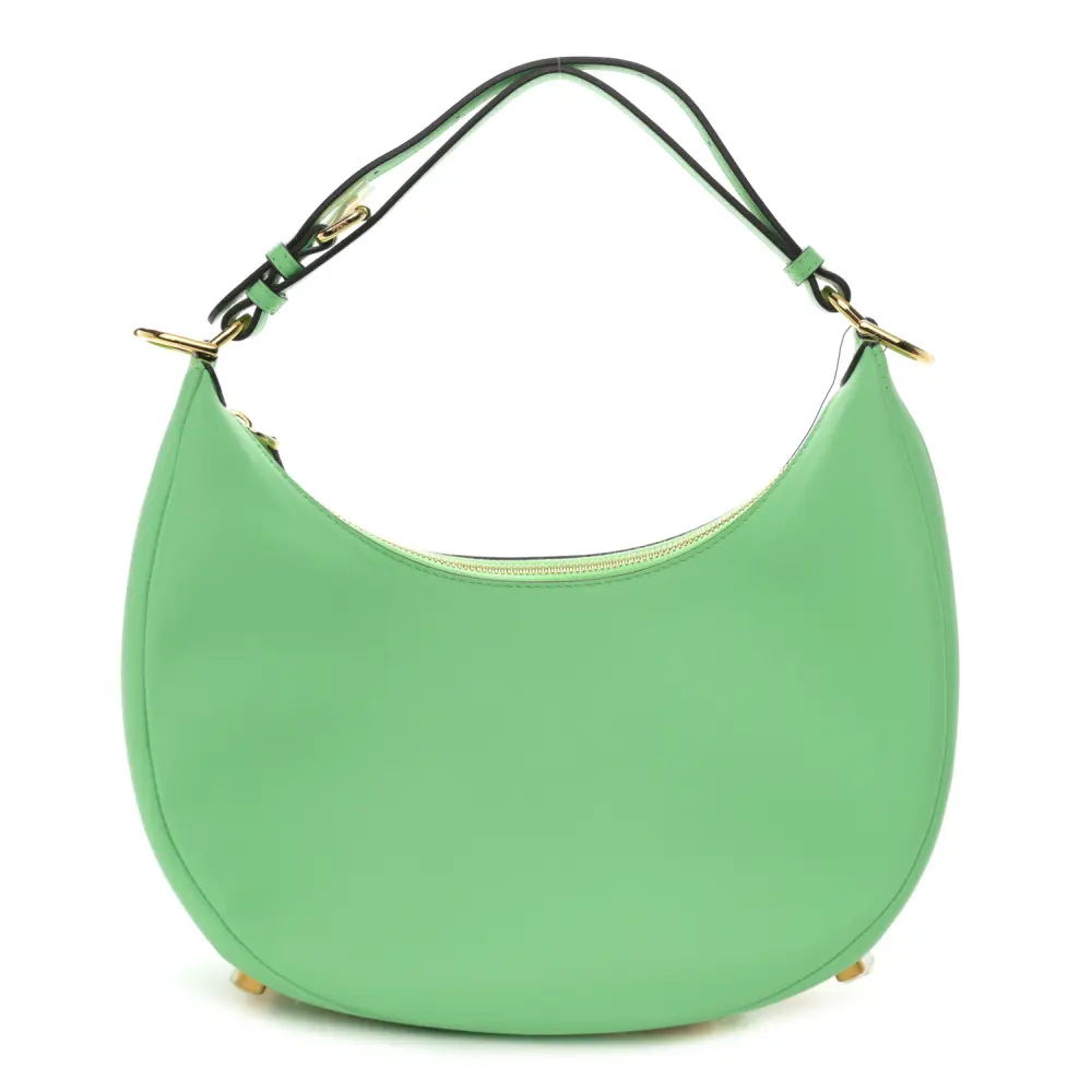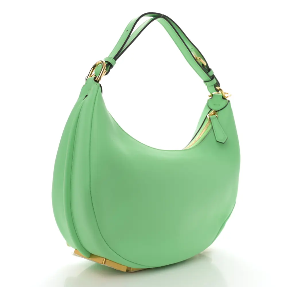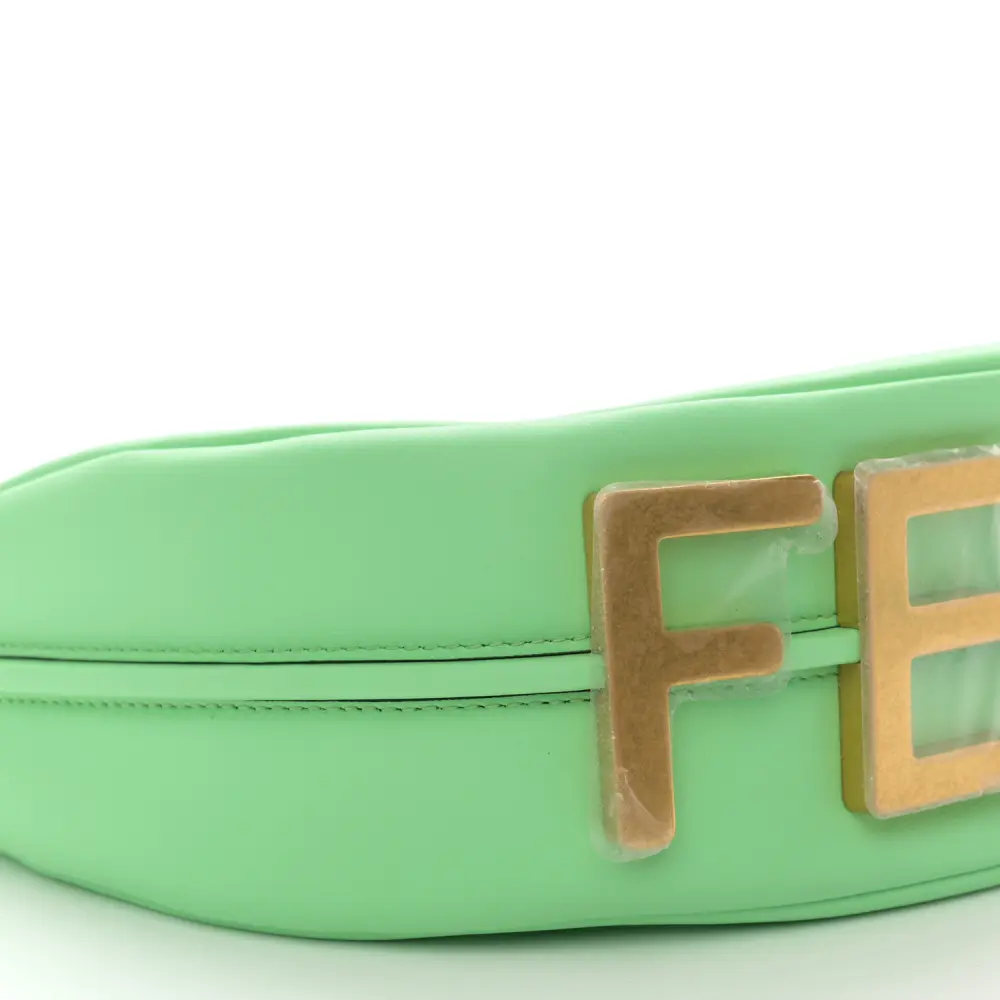 This Fendi Small Fendigraphy Hobo Bag in Edamame Matte Grace Vitello Leather is chic and contemporary. Gold hardware accents its sleek lines and minimalist design. Compact yet functional, it fits daily necessities with ease. Its versatile strap offers multiple carrying options. A stylish companion for day-to-night looks. Perfect for modern trendsetters.