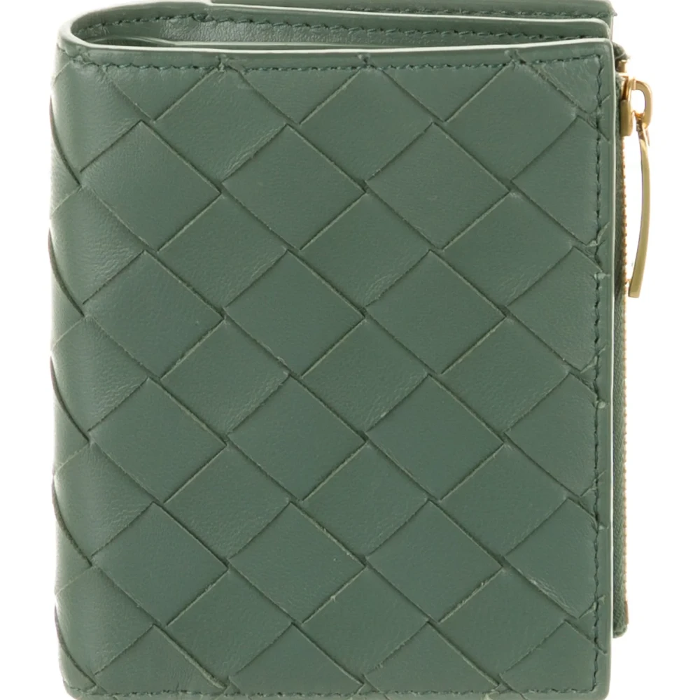 This Bottega Veneta Small Wallet is a testament to artisanal craftsmanship. Made from green intrecciato weave leather, it showcases the brand’s iconic woven design. The gold hardware adds a touch of refinement to its minimalist aesthetic. Compact and functional, it’s ideal for organizing daily essentials. This wallet conveys timeless elegance with understated luxury.