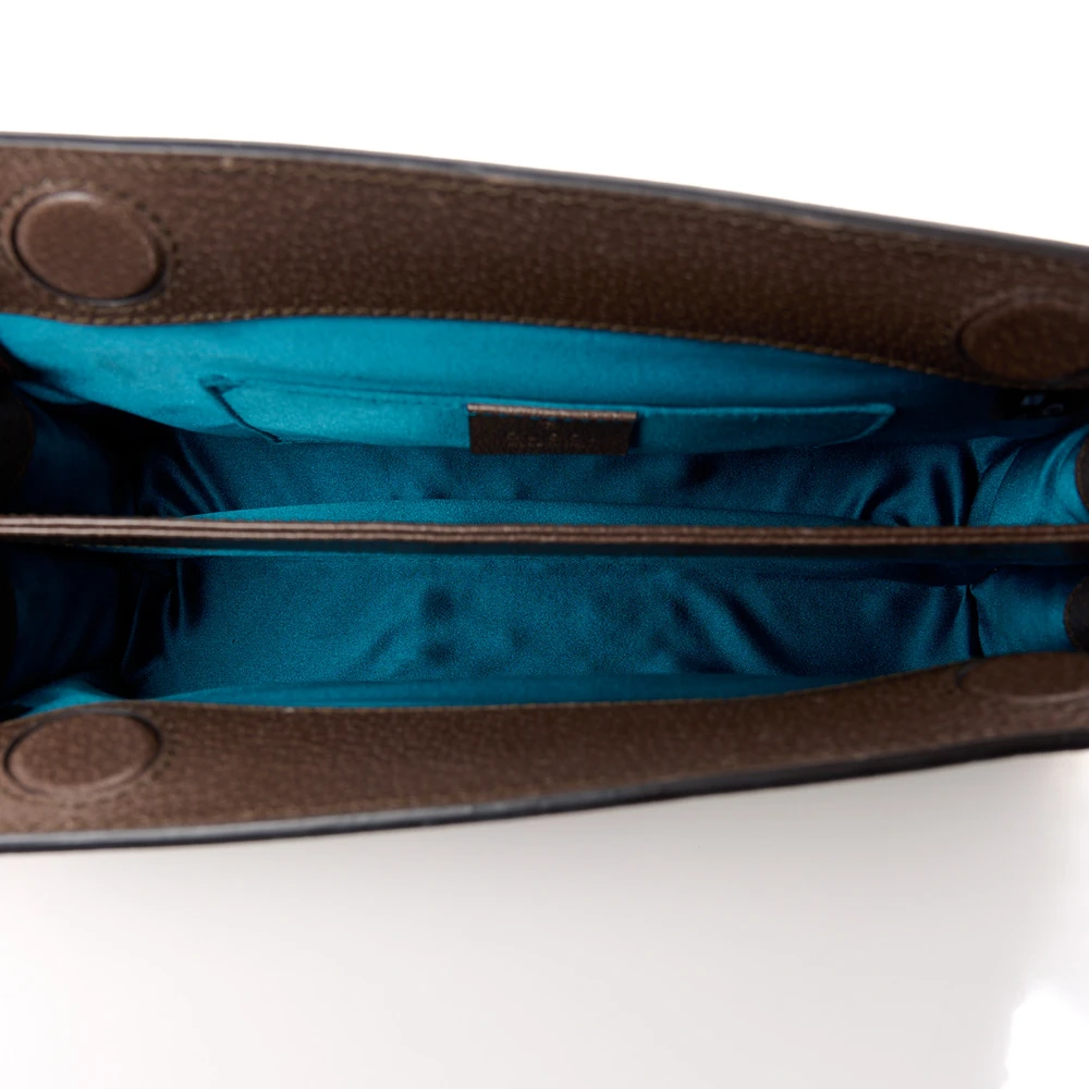 This Gucci Small Web Ophidia Chain Shoulder Bag features beige and brown GG Supreme monogram canvas. Gold hardware highlights its classic design. Ophidia web detail adds a signature touch. Compact and practical for everyday use. Chain strap ensures versatile styling. A timeless accessory for modern lifestyles.