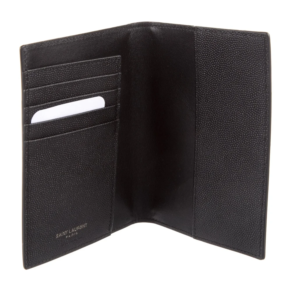 This Saint Laurent Small Bifold Wallet is the epitome of understated sophistication. Crafted from black saffiano leather, it features a textured surface that resists wear and tear. The minimalist design allows the beauty of its craftsmanship to shine. Compact and practical, it easily fits in your pocket or bag. This wallet exudes refined charm and everyday elegance.
