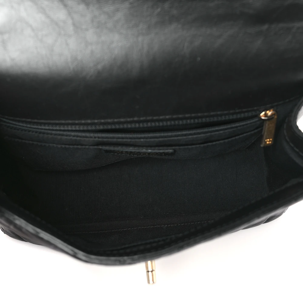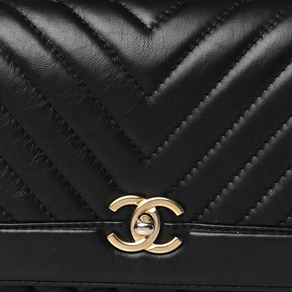 This Chanel Top Handle Flap Medium in Black Chevron Quilted Calfskin Leather with Gold Hardware is the epitome of elegance. The chevron quilting creates a dynamic and sophisticated pattern on the smooth calfskin leather. Gold hardware adds a timeless contrast, elevating its luxurious appeal. The structured design provides ample space for essentials while maintaining its chic silhouette. Its top handle and optional strap offer versatile carrying options. A versatile and refined accessory for any wardrobe.