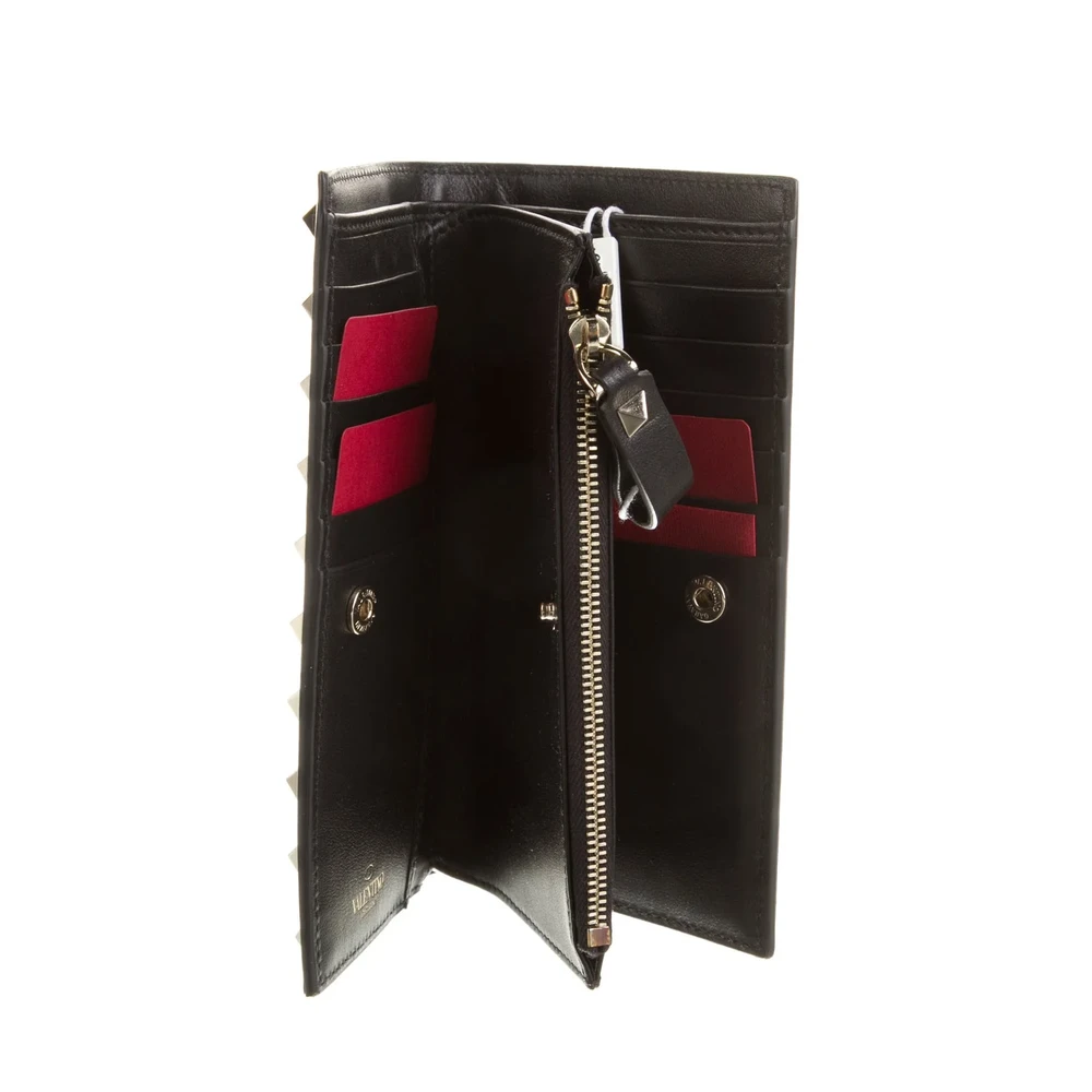 This Valentino Medium Printed Continental Wallet is a blend of elegance and modernity. Crafted from black calfskin leather, it features a subtle printed design that elevates its aesthetic. The gold hardware adds a luxurious touch, making it perfect for everyday use. Spacious and functional, it keeps essentials organized in style. This wallet reflects contemporary sophistication and classic charm.