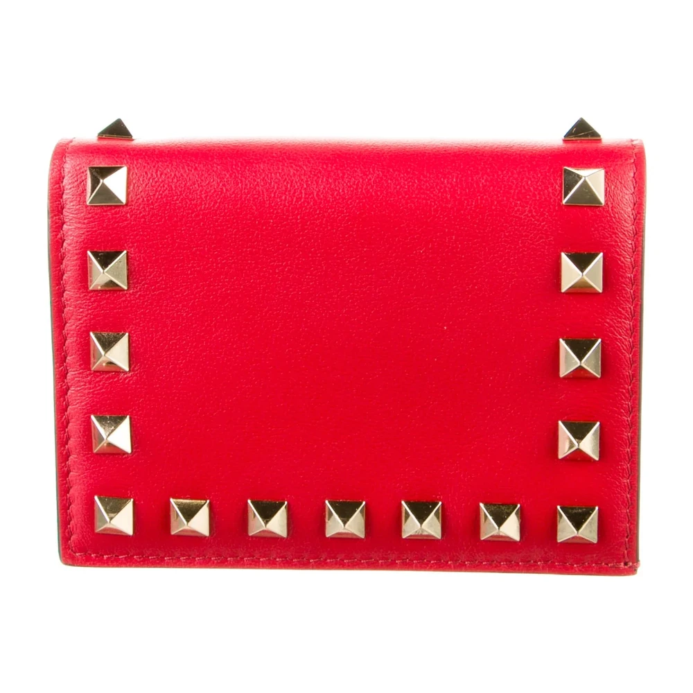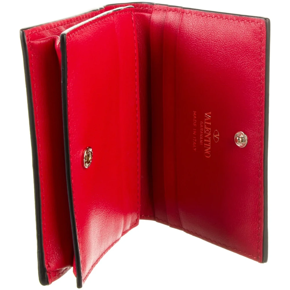 This Valentino Small Compact Wallet is a stylish and practical piece. Crafted from red calfskin leather, it offers a smooth and elegant texture. The gold hardware adds a luxurious touch, elevating its refined design. Compact and functional, it’s perfect for daily use. This wallet conveys timeless sophistication with modern appeal.