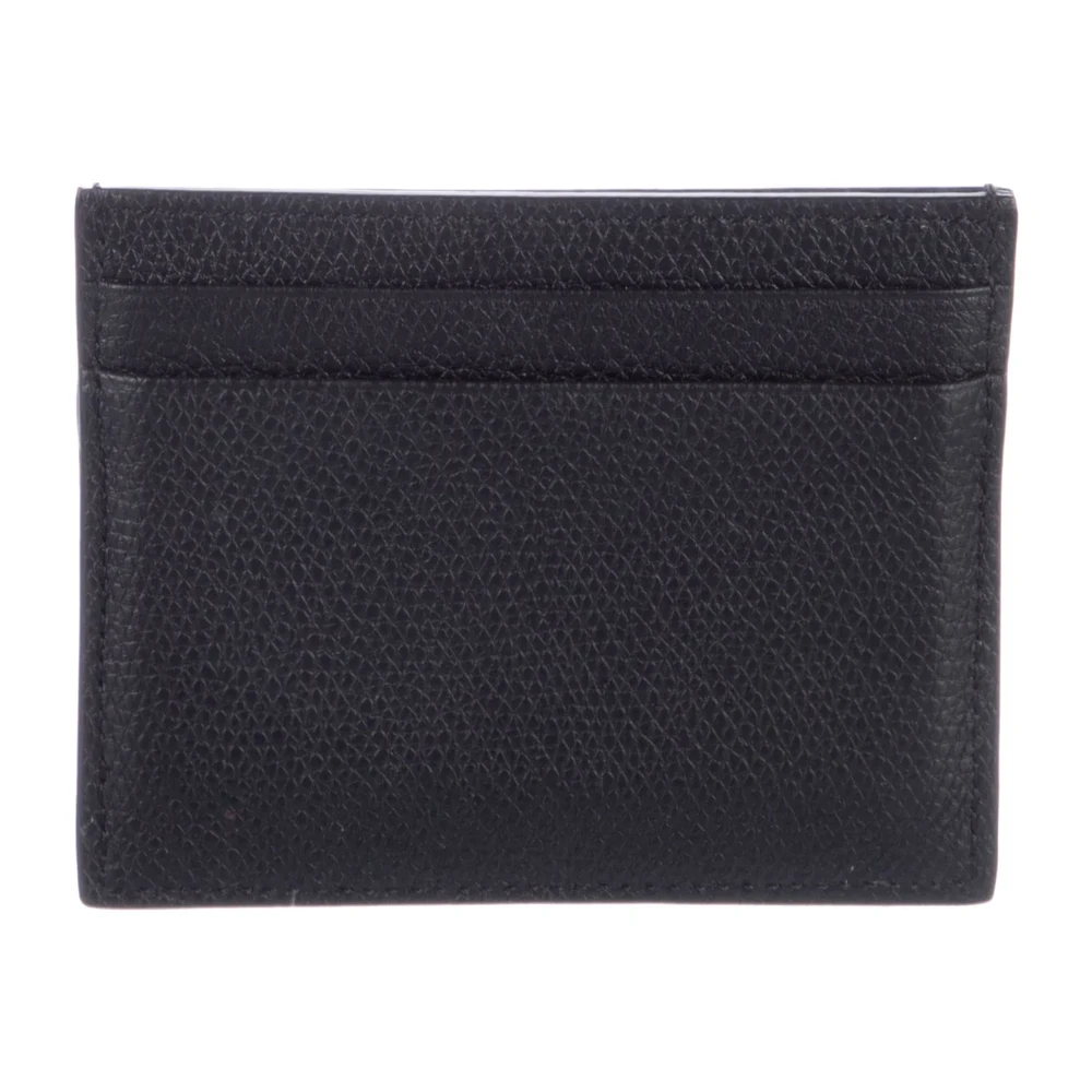 This Valentino Small Vlogo Card Holder combines sleek design with luxurious detail. Made from black calfskin leather, it features the signature Vlogo emblem. The gold hardware enhances its refined appeal. Compact and functional, it’s perfect for organizing your cards. This card holder conveys modern sophistication with Valentino’s signature charm.